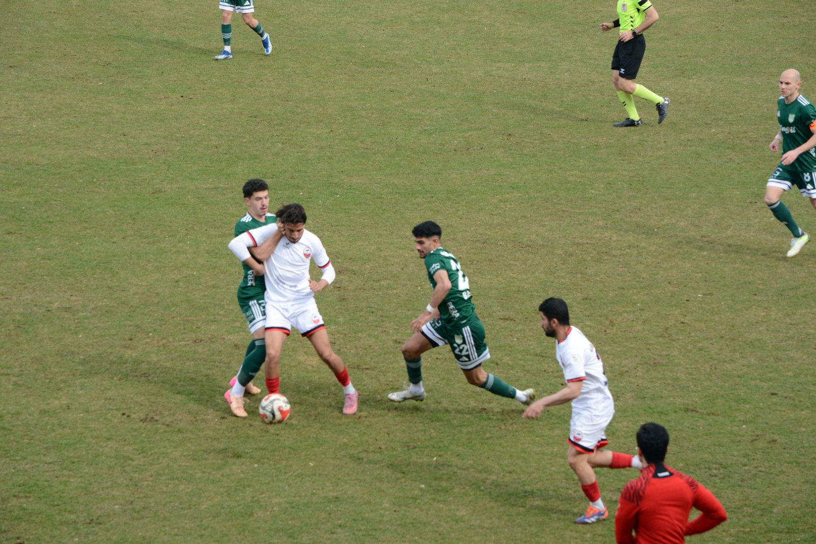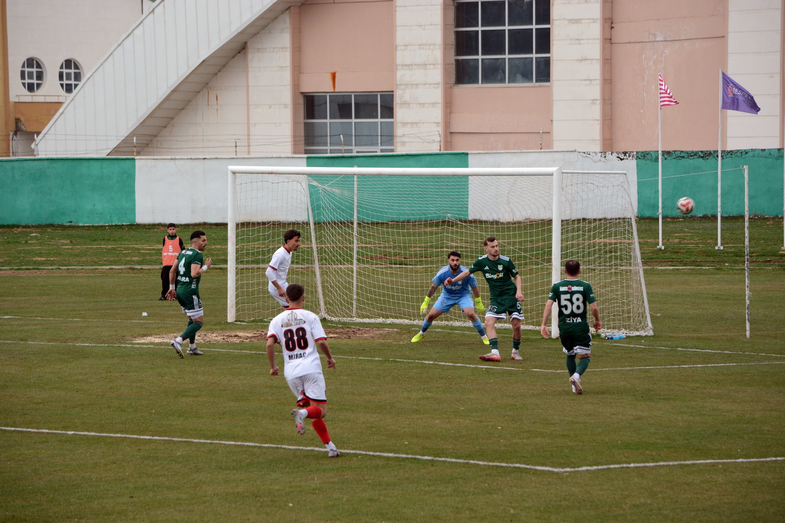 3’üncü Lig 2’nci Grup’ta 26’ncı hafta mücadelesinde lider 12 Bingölspor, Bingöl Şehir Stadyumu’nda Kahramanmaraşspor’u ağırladı. İzmir bölgesi hakemlerinden Erdem Demirtaş’ın yönettiği karşılaşmanın ilk yarısında rakip kalede baskı kuran 12 Bingölspor, aradığı golü bulamazken 19’uncu dakikada Vedat Saygı’nın attığı golle 1-0 geriye düştü. İlk yarının kalan dakikalarında beraberlik için yüklenen Bingöl ekibi, soyunma odasına mağlup girdi. Ev sahibi ekip, 50’nci dakikada Berk Ali Nizam’ın fileleri havalandırmasıyla skora dengeyi getirdi: 1-1. Karşılaşmanın kalan süresinde her iki takımın çabaları da sonucu değiştirmeye yetmeyince, 90+7’nci dakika sonunda taraflar sahadan birer puanla ayrıldı. (DHA)