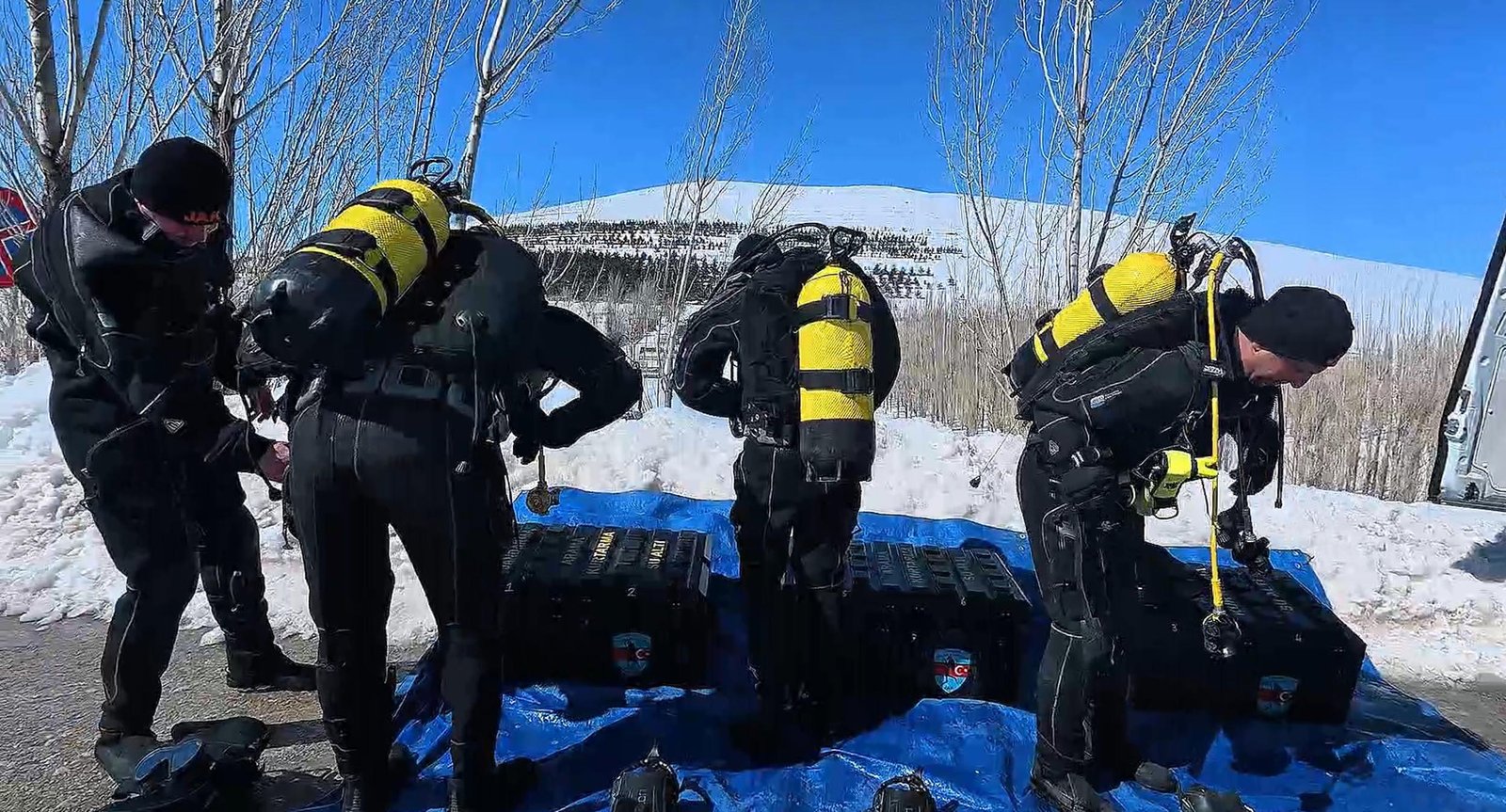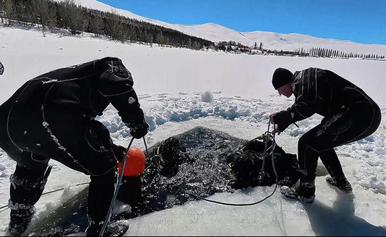 Erzurum il Jandarma Komutanlığı SAK Timi, profesyonel yetkinliklerini artırmak ve zorlu iklim koşullarına adaptasyonunu sağlamak maksadıyla, buz altı dalış eğitimi gerçekleştirdi. Palandöken ilçesindeki 2100 metre rakımlı Teke Deresi Gölet’ine giden SAK Timi -10 derece hava sıcaklığında 28 santimetre kalınlığındaki buz tabakasını motorlu testereyle kesti. 6 jandarma personelinin katıldığı eğitimde suya giren SAK Timi gölde Türk bayrağı açtı.