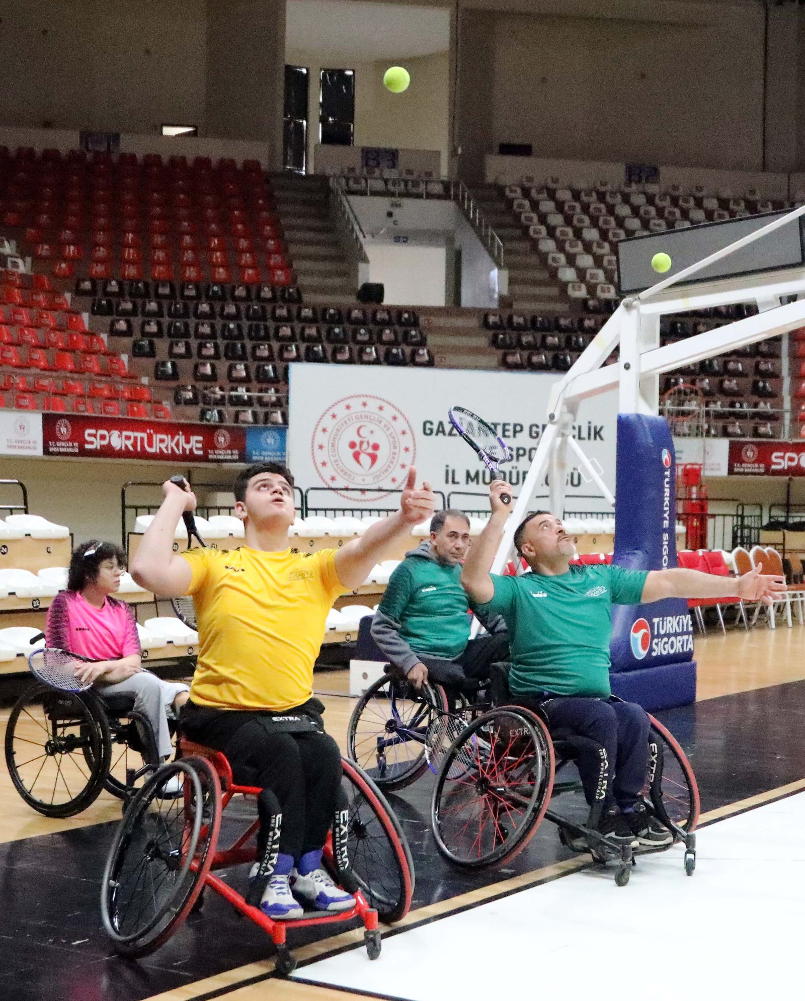 Ahmet ATMACA-Nuray UZATMAZ/GAZİANTEP, (DHA)- KAHRAMANMARAŞ merkezli 6 Şubat 2023 depremlerinde uzuvlarını kaybedenlerin de aralarında olduğu 33 kişi, tekerlekli sandalyede tenis eğitimleri alıp, hayata yeniden tutundu. Gaziantep Büyükşehir Belediyesi Engelli, Yaşlı ve Sağlık Hizmetleri Daire Başkanı Yusuf Çelebi, sporla tüm engellerin aşılacağını ifade ederek, “Ampute olan arkadaşlarımızı önce ayağa kaldırdık sonra hayata kattık. Sporla engelleri aşıyoruz” dedi.