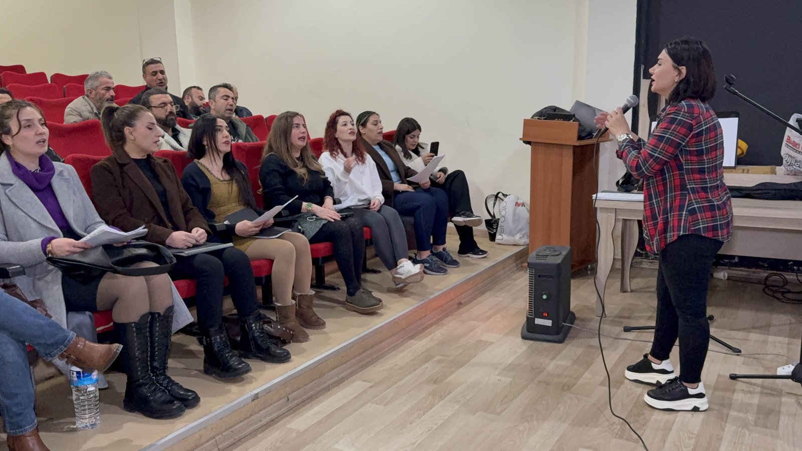 Koro şefi Gurbet Ok ise konser için Anadolu’nun birçok yöresinden şarkıların seçildiğini ifade ederek, “Burada çok dilli koro formatında bir konser hazırlığı yapıyoruz. 7 dilde eserlerimiz mevcuttur ve toplamda 14 eserimiz vardır. Anadolu’muzun birçok yöresinden ezgiler bulunmaktadır. Bu şekilde, çok dilli formatında bir koro oluşturduk. Farklı meslek gruplarından arkadaşlarımız bu koroda yer almakta; öğretmeni de var, mühendisi de var, profesörümüz de var. Her meslek grubundan arkadaşımız, burada bizimle birlikte, bu müzik yolculuğunda bize eşlik ediyorlar” diye konuştu. (DHA)