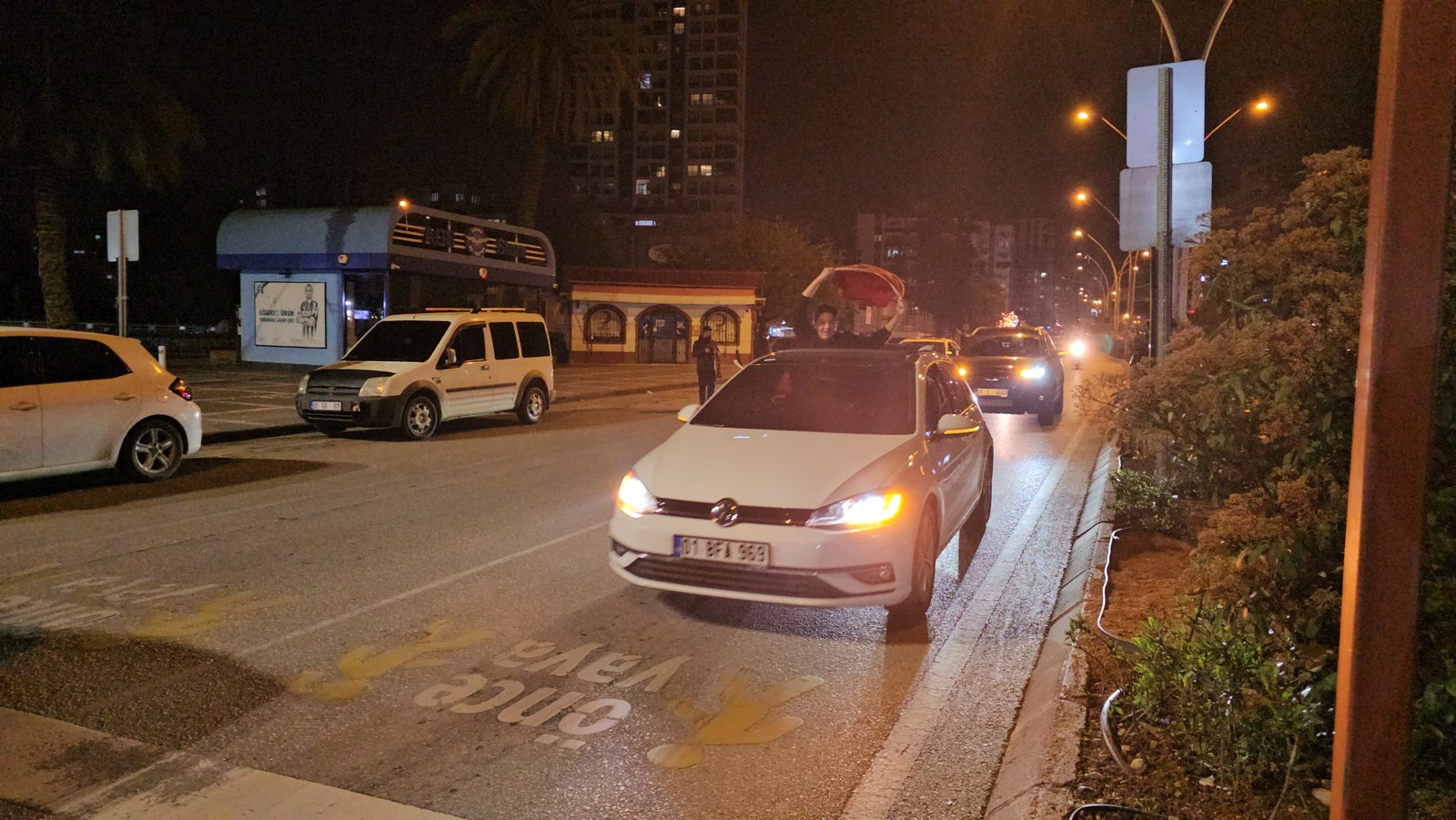 A Milli Futbol Takımı, play-off finalinde Kosova’yı 1-0 mağlup ederek 24 yıl aradan sonra Dünya Kupası’na katılmaya hak kazandı. Yıllar sonra A Milli Futbol Takımı’nın Dünya Kupası’na gidecek olması Adana’da sevinçle karşılandı. Araçlarıyla caddeye çıkan vatandaşlar, korna çalıp, Türk bayraklarını sallayarak 2026 Dünya Kupası heyecanını kutladı. (DHA)