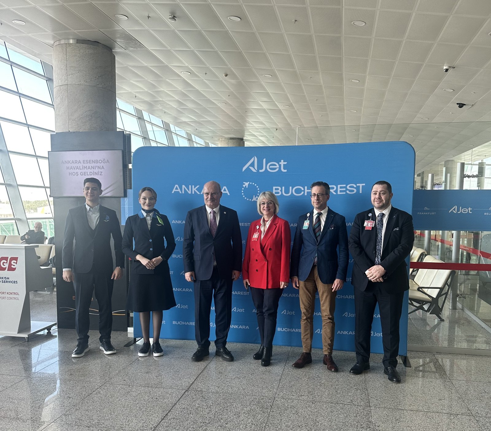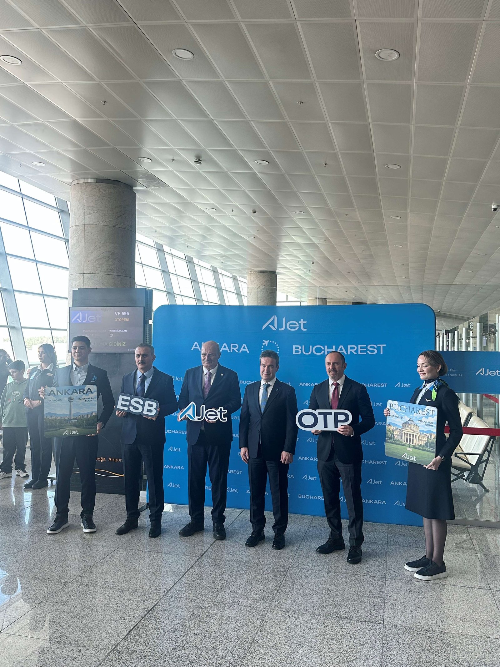 TAV Havalimanları tarafından işletilen Ankara Esenboğa Havalimanı’ndan AJet Havayolları’nın Bükreş’e düzenlediği ilk uçuş, törenle uğurlandı. Dün saat 17:30’da Boeing 737-8 MAX tipi uçakla gerçekleştirilen VF595 sefer sayılı ilk uçuşla yolcular Ankara’dan Bükreş’e hareket etti. Düzenlenen törene Ankara Esenboğa Havalimanı Mülki İdare Amiri Cem Afşin Akbay, DHMİ Esenboğa Başmüdürü Yücel Karadavut, AJet Havayolları Genel Müdürü Kerem Sarp, TAV Ankara Genel Müdürü Nuray Demirer, ATO Başkanı Gürsel Baran ile havalimanı ve havayolu çalışanları ile diğer davetliler katıldı. AJet Havayolları, Ankara–Bükreş hattında pazartesi, perşembe ve cumartesi günleri olmak üzere haftada üç gün karşılıklı sefer düzenleyecek.