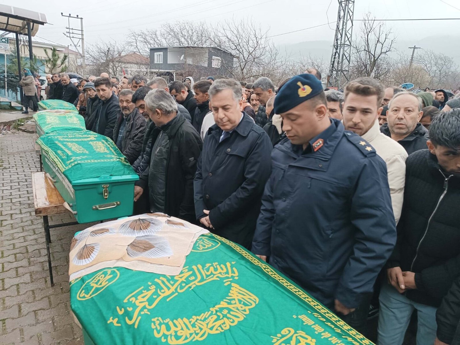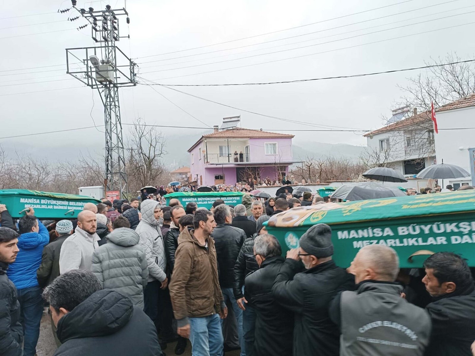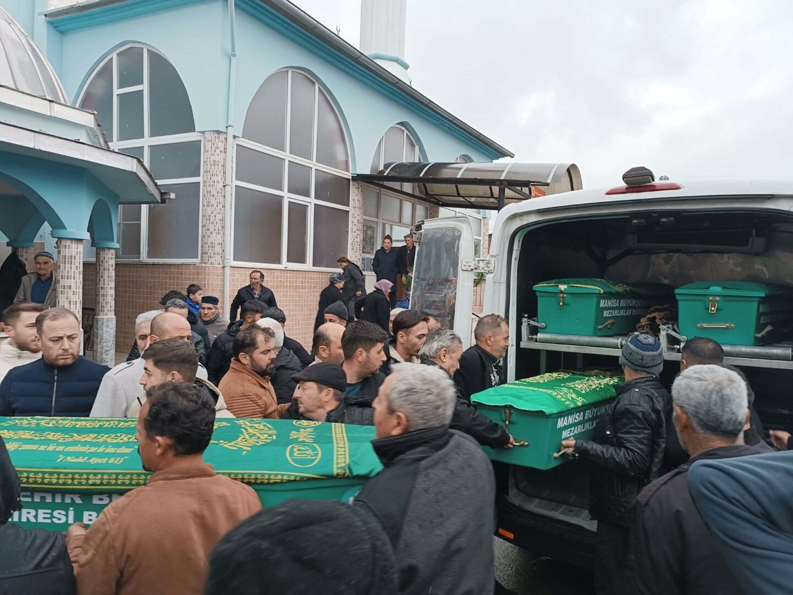 Manisa’nın Turgutlu ilçesinde Ömer Coşkun (26) tarafından öldürülen Sariye Nur Coşkun (22), Musa Girgin (51), Fatma Girgin (43) ve Yusuf Can Girgin (13) için Turgutlu’daki Kabaçınar Camii önünde cenaze töreni düzenlendi. Cenazeye hayatını kaybedenlerin yakınlarının yanı sıra Turgutlu Kaymakamı Selami Kapankaya ve vatandaşlar katıldı. İkindi vakti İlçe Müftüsü Ömer Çoban’ın kıldırdığı namazın ardından cenazeler, Kabaçınar Mezarlığında toprağa verildi.