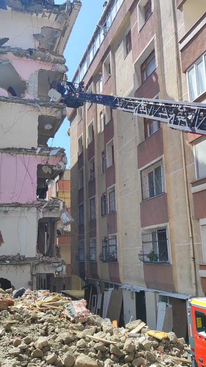 Olay Avcılar’da meydana geldi. Yıkımına başlanan 5 katlı binada iş makineleri arızalanınca yıkımı durduruldu. Ön tarafı ve merdivenleri dahil birçok bölümü yıktırılan binadan kedi sesi duyan mahalle sakinleri itfiaye ekiplerine ihbarda bulundu. Olay yerine sevk edilen itfaiye ekibi üç kurtarma girişiminde bulundu; ancak kedi mahsur kaldığı yerden çıkarılamadı. Mahalle sakinleri kediyi aramayı sürdürürken, itfaiye ekibi merdivenle bir bölümü ayakta duran binaya yaklaştı. İki kadın itfaiyeci beton parçası üzerinde bekleyen kediyi sepete aldı. Hayvanseverlerin alkışları arasında yavru olduğu belirlenen kedi mahalle sakinlerine teslim edildi. Yavru kedinin kurtarılmasıyla sevinç yaşayan hayvanseverler itfaiye ekibine teşekkür etti. Yavru kedi bahçesinde 13 kedi baktığı öğrenilen bir mahalle sakinine teslim edildi.(DHA)