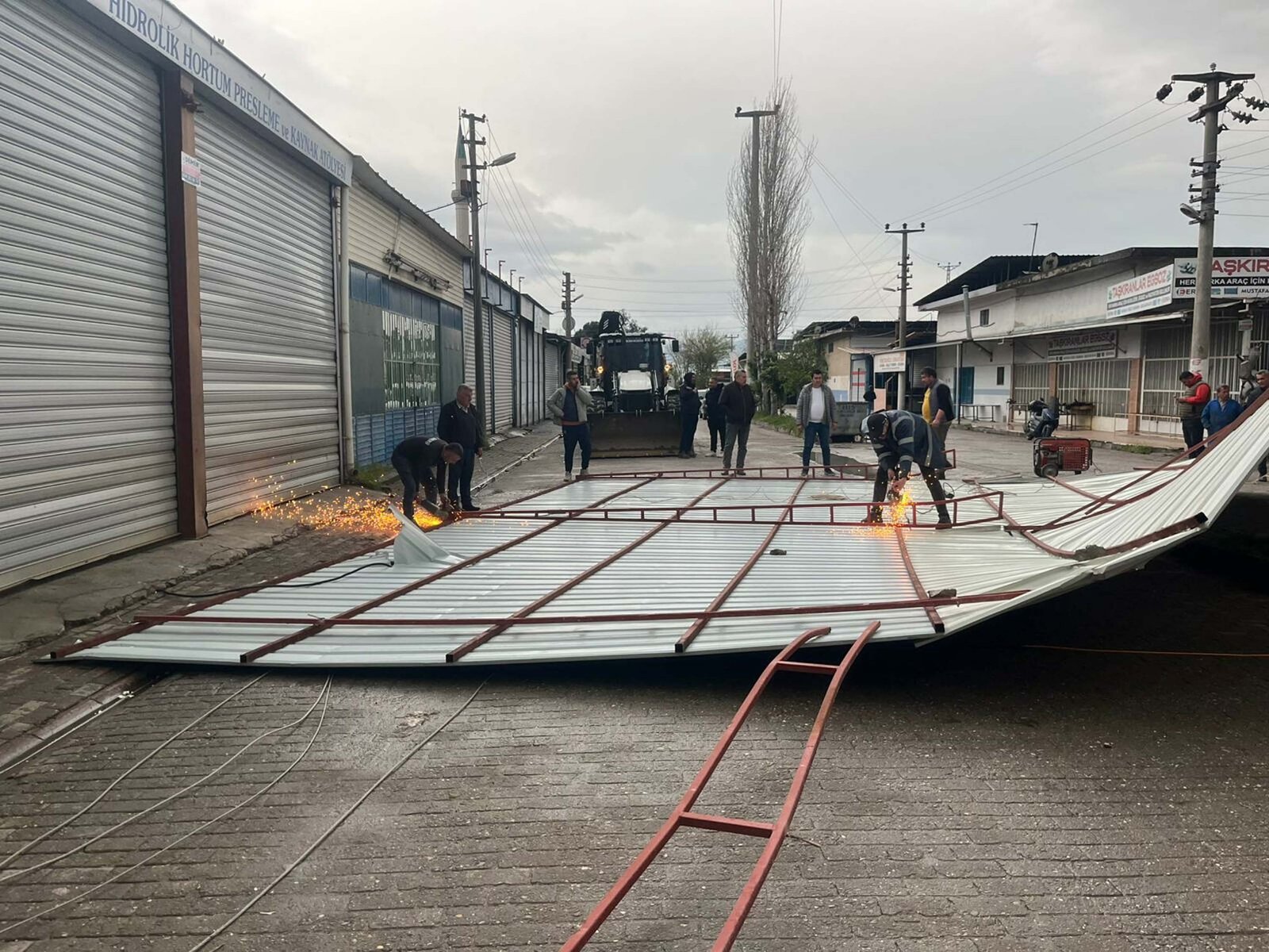 Melek FIRAT/ AYDIN, (DHA)- AYDIN’ın İncirliova ilçesinde, etkili olan fırtına nedeniyle sanayi sitesinde bir iş yerinin çatısını uçtu.