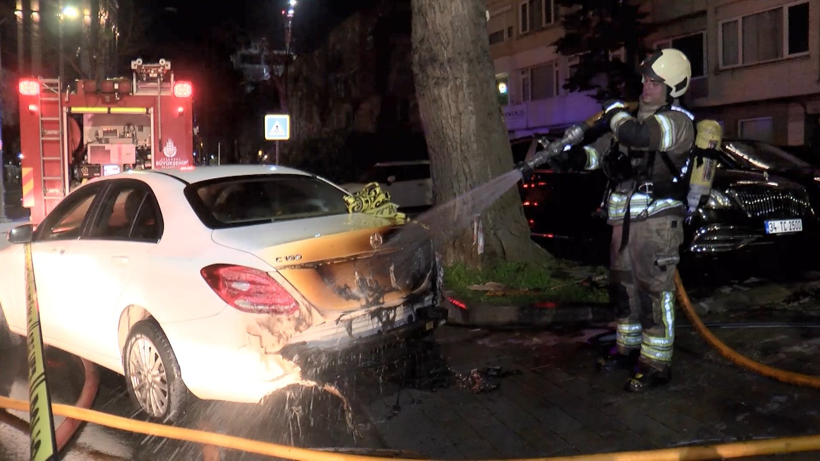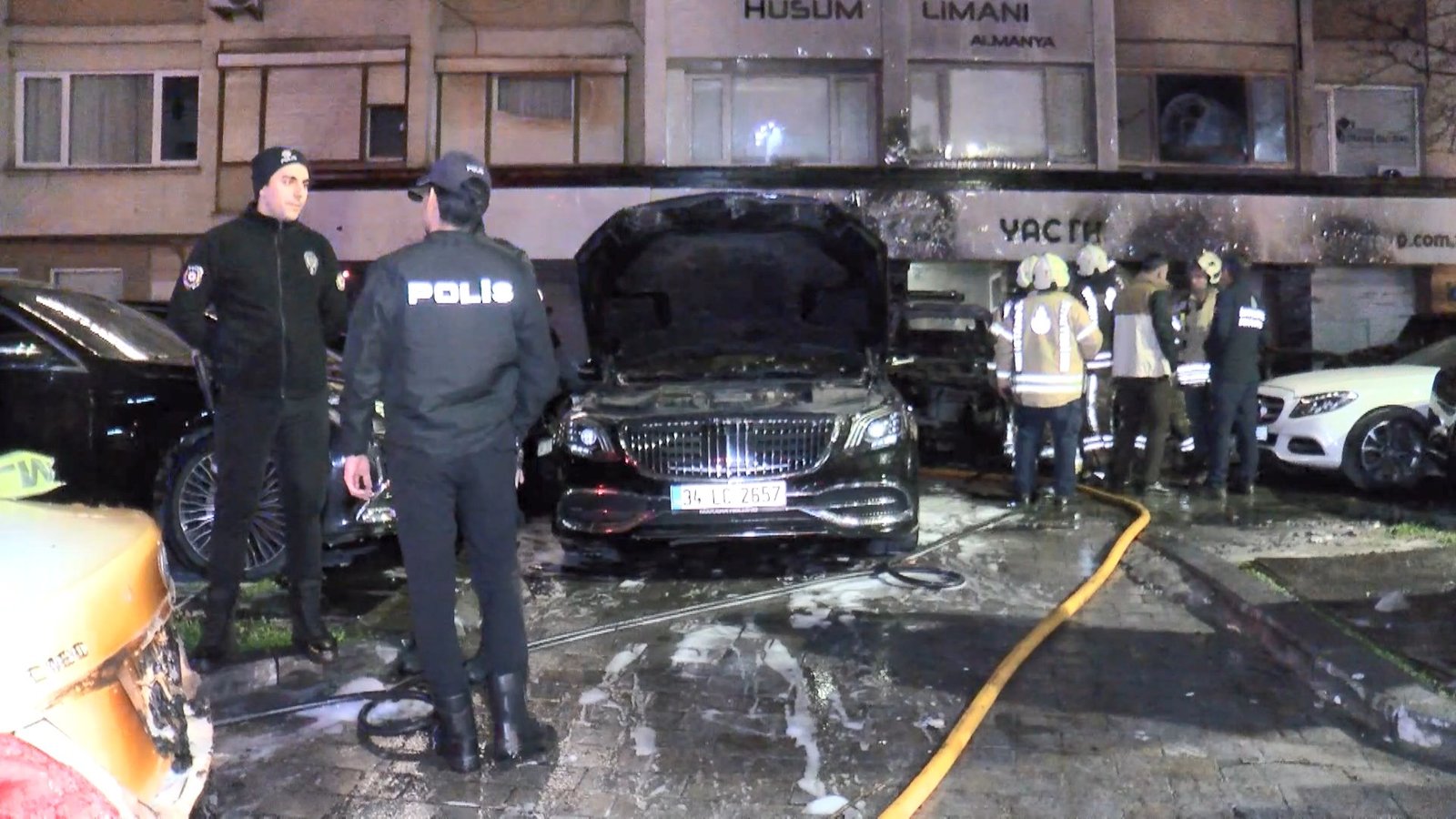 Beşiktaş’ta oto kiralama şirketinde yangın; 15 lüks araç yandı