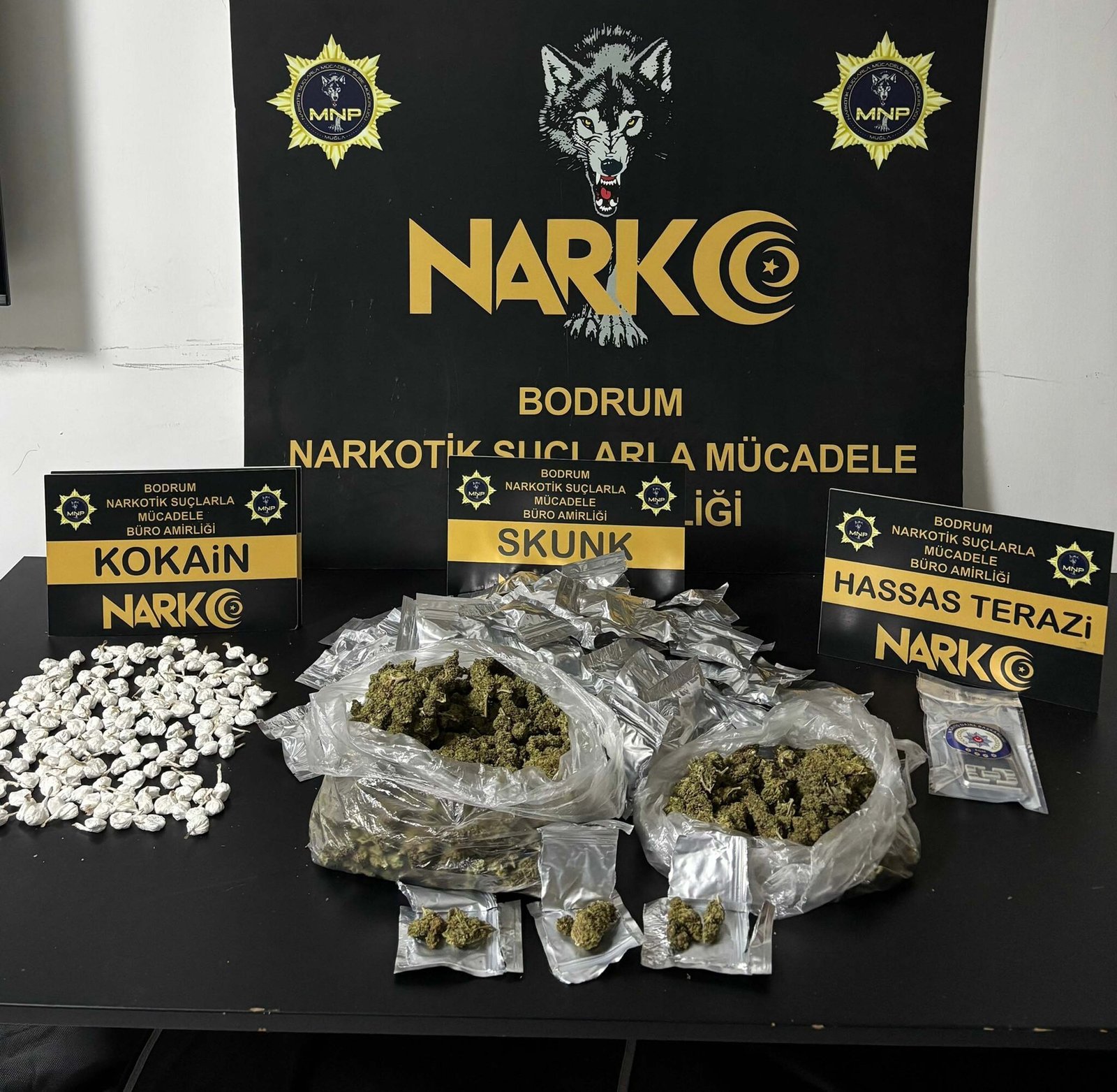Fırat AKAY/BODRUM(Muğla), (DHA)- MUĞLA’nın Bodrum ilçesinde polisin düzenlediği operasyonda farklı çeşit ve ölçülerde uyuşturucu husus ele geçirildi, 3 kuşkulu tutuklandı.