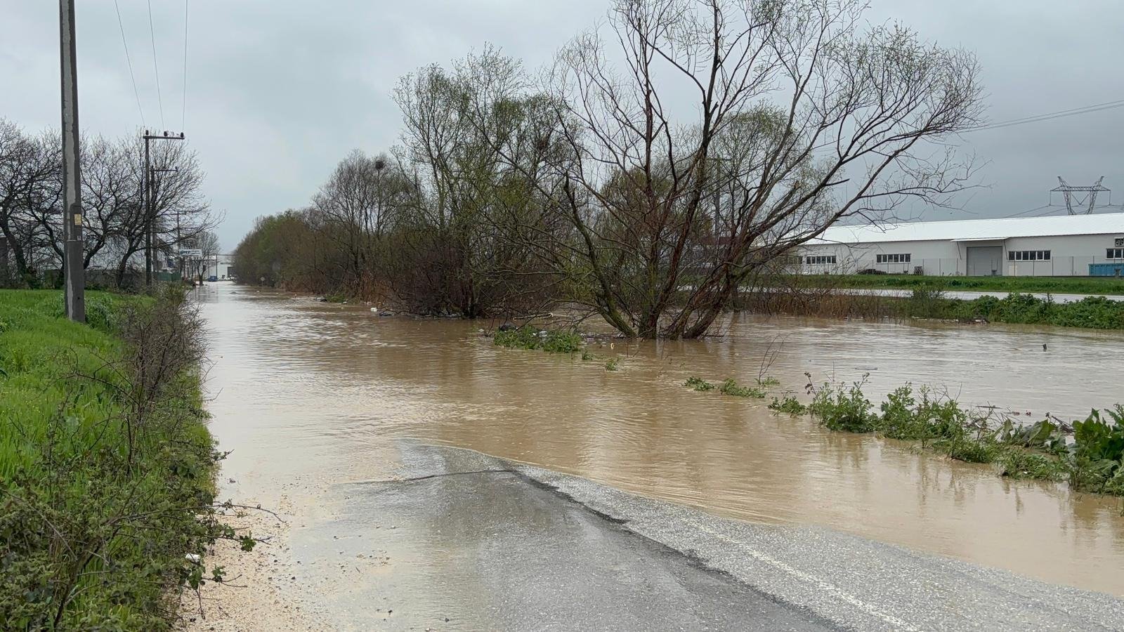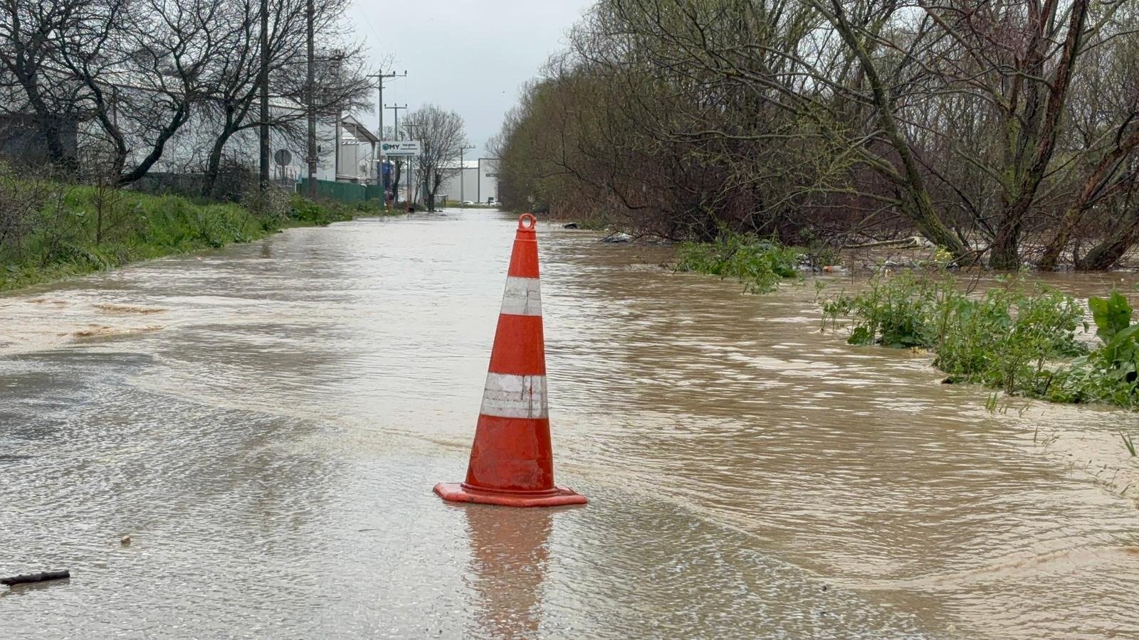 NİLÜFER ÇAYI TAŞTI, YOL KAPANDI Bursa’da şiddetini artıran sağanak nedeniyle