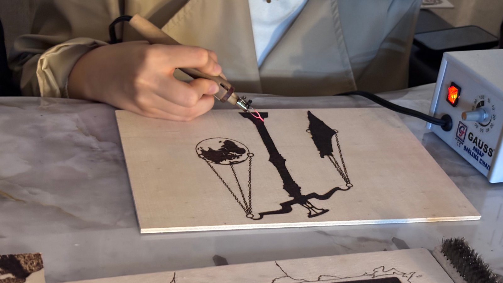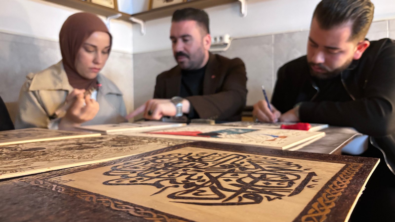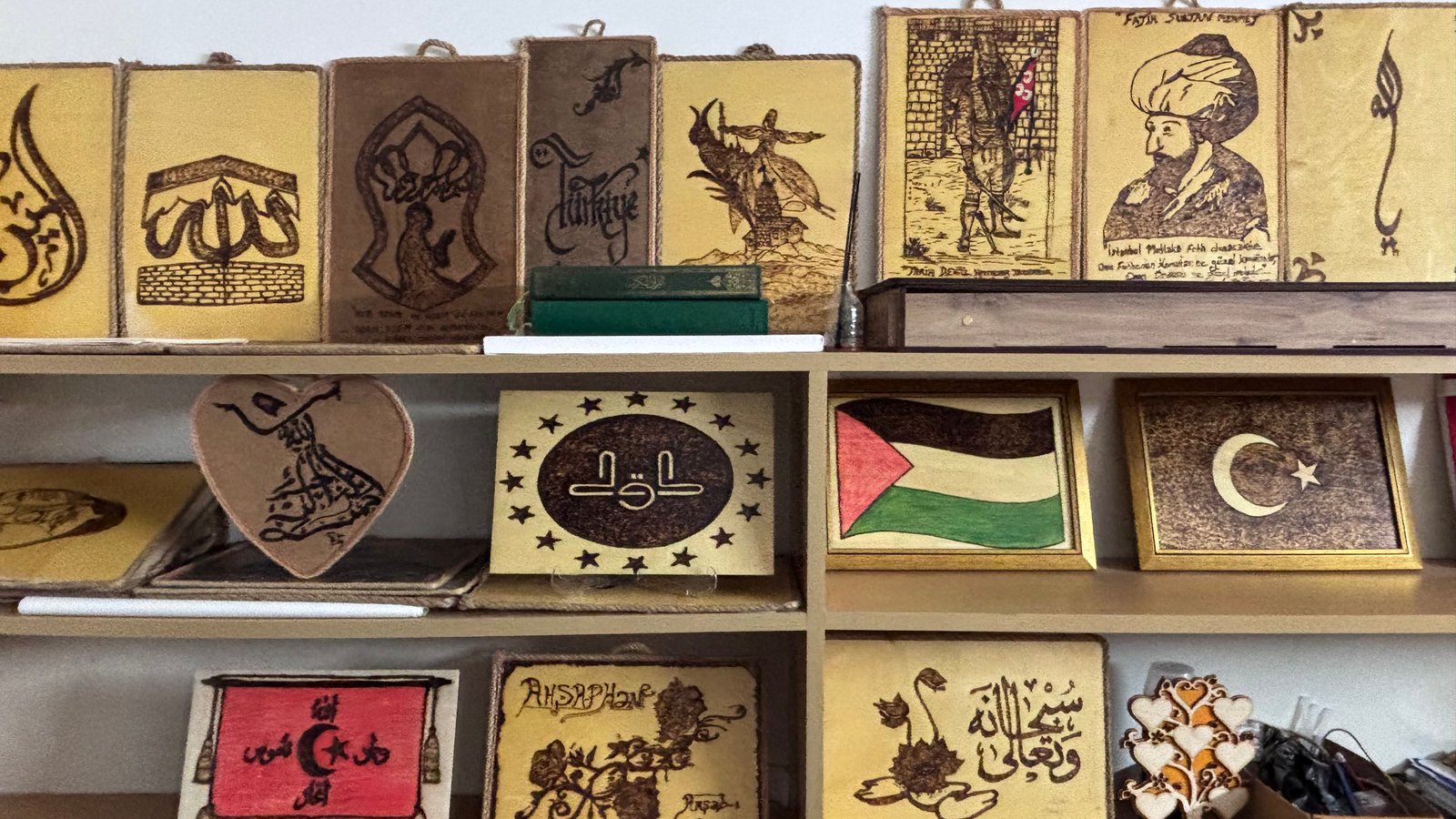 Mikail KARAMAN-Emirhan YÜZÜGÜLDÜ/ANKARA, (DHA)- ANKARA’nın Etimesgut ilçesinde imam Erkut Özer, görev yaptığı Hasan Kartal Orta Camii’nde kurduğu sanat atölyesinde ahşap yakma sanatı ile ürettiği tabloları sergi ve kermeslerde satıp, depremzede öğrenciler ile şehit ve gazi yakınlarına destek sağladı.