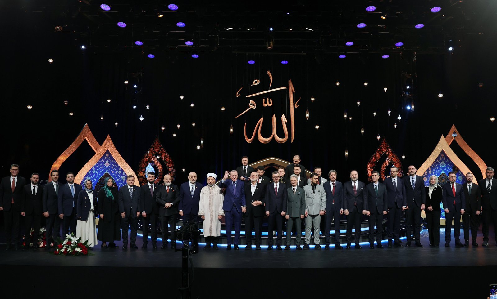 İslam’a, Müslümanlara ve insanlığa hizmet etmiş, hayatını ‘Emri bil maruf nehyi anil münker’ yoluna adamış tüm hocaları ve tüm büyükleri rahmetle yad ettiğini dile getiren Erdoğan, “Rabbim hepsinden razı olsun onları cennetiyle, cemaliyle şereflendirsin. Bizleri de inşallah Efendimizin liva-ül hamd sancağı altında kendileriyle haşru cem eylesin. Birazdan ödüllerini takdim edeceğimiz, tilavetleriyle gönül bahçemizi yeşerten Kur’an bülbüllerini tebrik ediyorum. Aynı şekilde büyük finale katılan tüm karilerimizi, hafızlarımızı, hocalarımızı yürekten kutluyorum. 10’uncu yaşını dolduran Kur’an-ı Kerim’i Güzel Okuma yarışmasının daha nice seneler devam etmesini, bu müstesna organizasyonun hanelerimizi daha nice yıllar Kur’an sesleriyle tezyin etmesini diliyorum