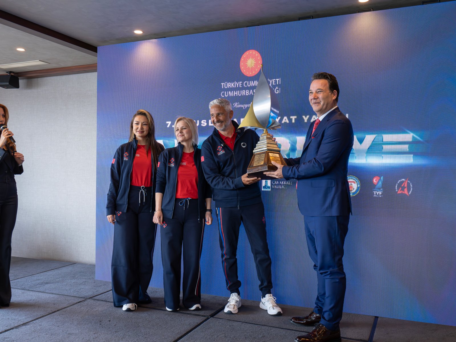 Türkiye Yelken Federasyonu Başkanı Özlem Akdurak da “Türk yelken sporu Cumhurbaşkanımızın sporun her alanında koyduğu irade ve vizyondan nasibini alarak, Gençlik Spor Bakanımız Sayın Osman Aşkın Bak’ın muazzam çabaları ve destekleriyle, bütün spor dallarında olduğu gibi bizler de bu grafikten nasibimizi alarak geçtiğimiz yıllarda her yıl artan başarılarımızla uluslararası camiada bayrağımızı dalgalandırmaya devam ediyoruz. Bu yıl artan uluslararası başarılarımız 2025 yılında bir zirveye taşınarak gençlik sınıflarında dünya şampiyonalarında ve Avrupa şampiyonalarında ayrı ayrı her ikisinde de en fazla madalya alan ülke konumuna taşıdı bizi. Bu gurur hepimizin. Amacımız 2028 Los Angeles Oyunları’nda en az iki branşta Türk yelkenciliğine bir ilk yaşatarak madalyayla olimpiyattan dönmektir” dedi.