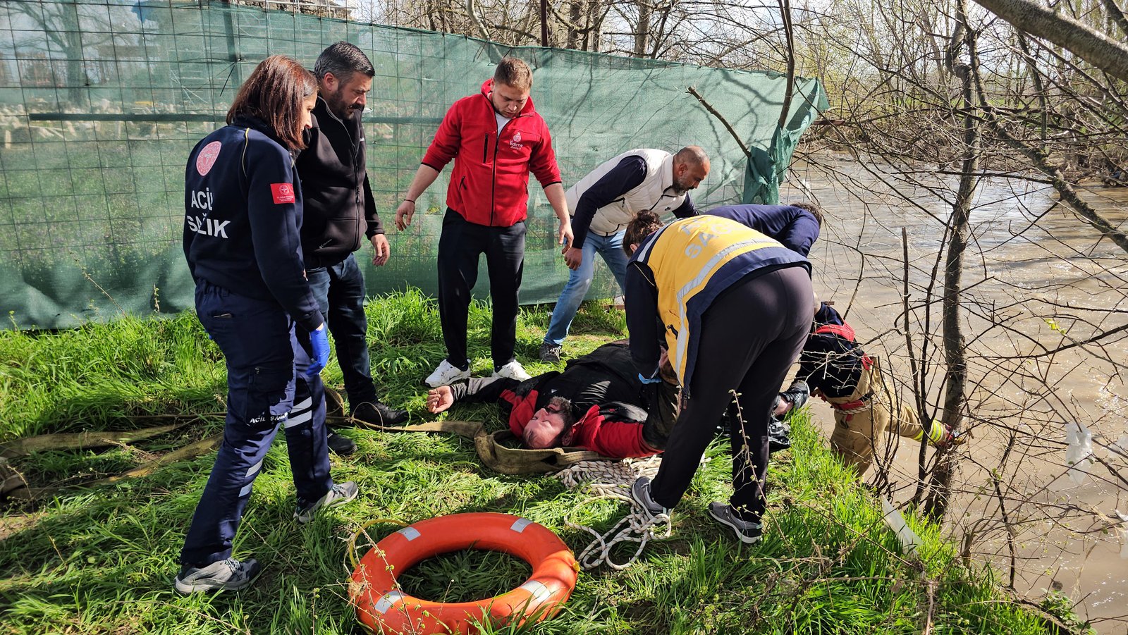 Olgay GÜLER/EDİRNE, (DHA)- EDİRNE’de dengesini kaybedip Tunca Nehri’ne düşen Murat Güler (43), itfaiye ekipleri tarafından kurtarıldı.