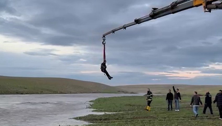 Ceylanpınar ilçesinde, TİGEM arazisi içerisindeki Ofa Göçer yerleşkesinde Mazlum A. traktörüyle İbrahimağa Deresi’nden geçmek isterken mahsur kaldı. Durumu fark eden vatandaşların ihbarı üzerine bölgeye jandarma, itfaiye ve sağlık ekipleri sevk edildi. Akıntının şiddetli olması nedeniyle kurtarma çalışmalarına vinç ve iş makineleri de dahil edildi. Vincin ucundaki kancaya bağlanan halata tutunan Mazlum A., suya kapılmamak için büyük çaba gösterdi. Yapılan çalışma sonucu sürücü, kurtarılıp güvenli alana alındı. Mazlum A.’nın sağlık durumunun iyi olduğu öğrenildi. Derede mahsur kalan traktörün ise debinin düşmesinin ardından çıkarılacağı bildirildi.