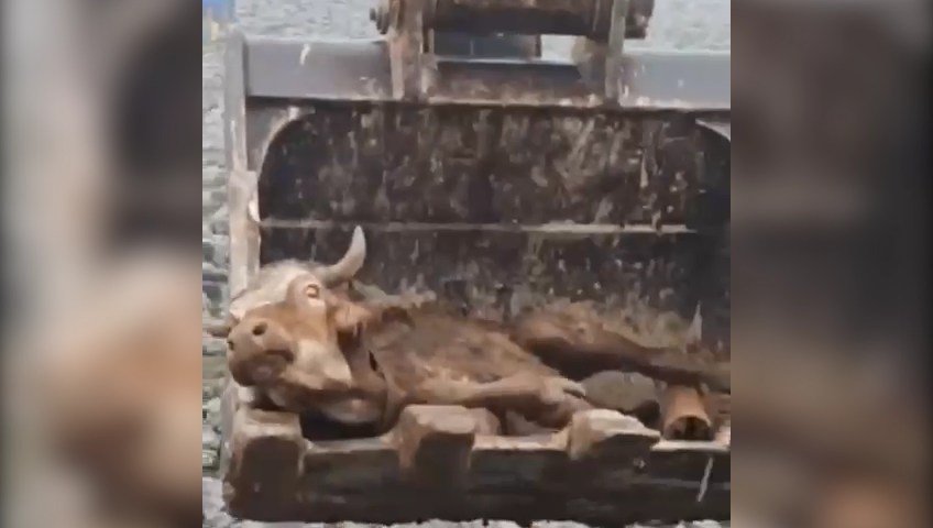 ÇAMURA SAPLANAN İNEK KURTARILDI