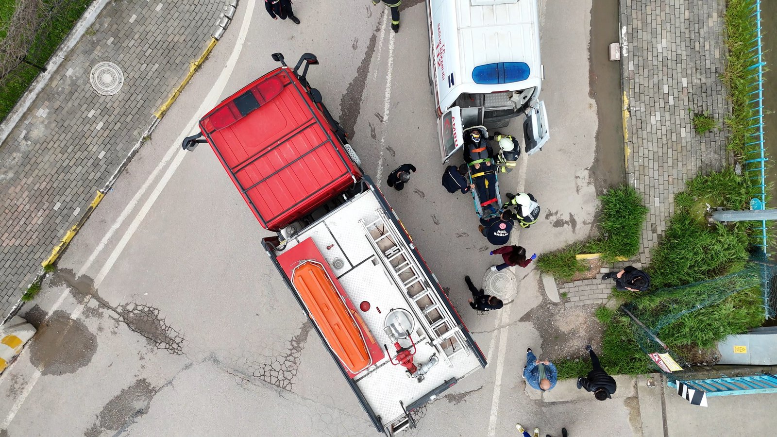 Kaza, saat 14.00 sıralarında Yahya Kaptan Mahallesi Bestekar Amir Ateş Caddesi’nde meydana geldi. M.E.’nin kontrolünü yitirdiği kamyonet, demir korkuluklara çarpıp yerinden sökerek Akarca Deresi’ne uçtu. Çevredekilerin 112 Acil Çağrı Merkezi’ne ihbarı üzerine bölgeye itfaiye, sağlık ve polis ekipleri sevk edildi. Dereye inen itfaiye eri, kamyonetteki M.E.’ye kalp masajı yaptı. M.E., ardından itfaiyenin merdiveniyle caddeye çıkarıldı. Ambulansa alınan ve Kocaeli Şehir Hastanesi’ne kaldırılan M.E.’nin hayati tehlikesinin sürdüğü öğrenildi. Bu arada kaza yeri dron ile görüntülendi.