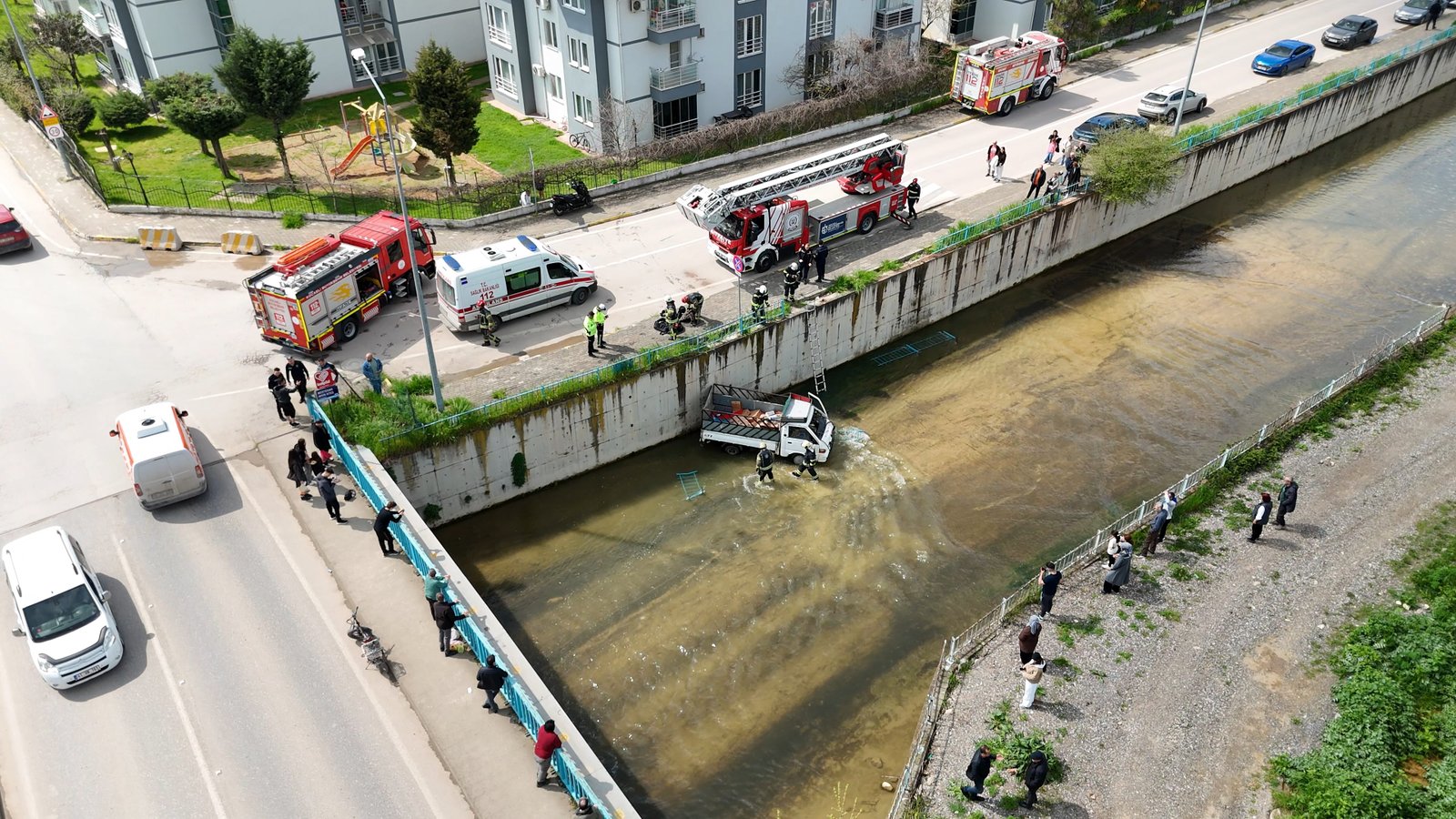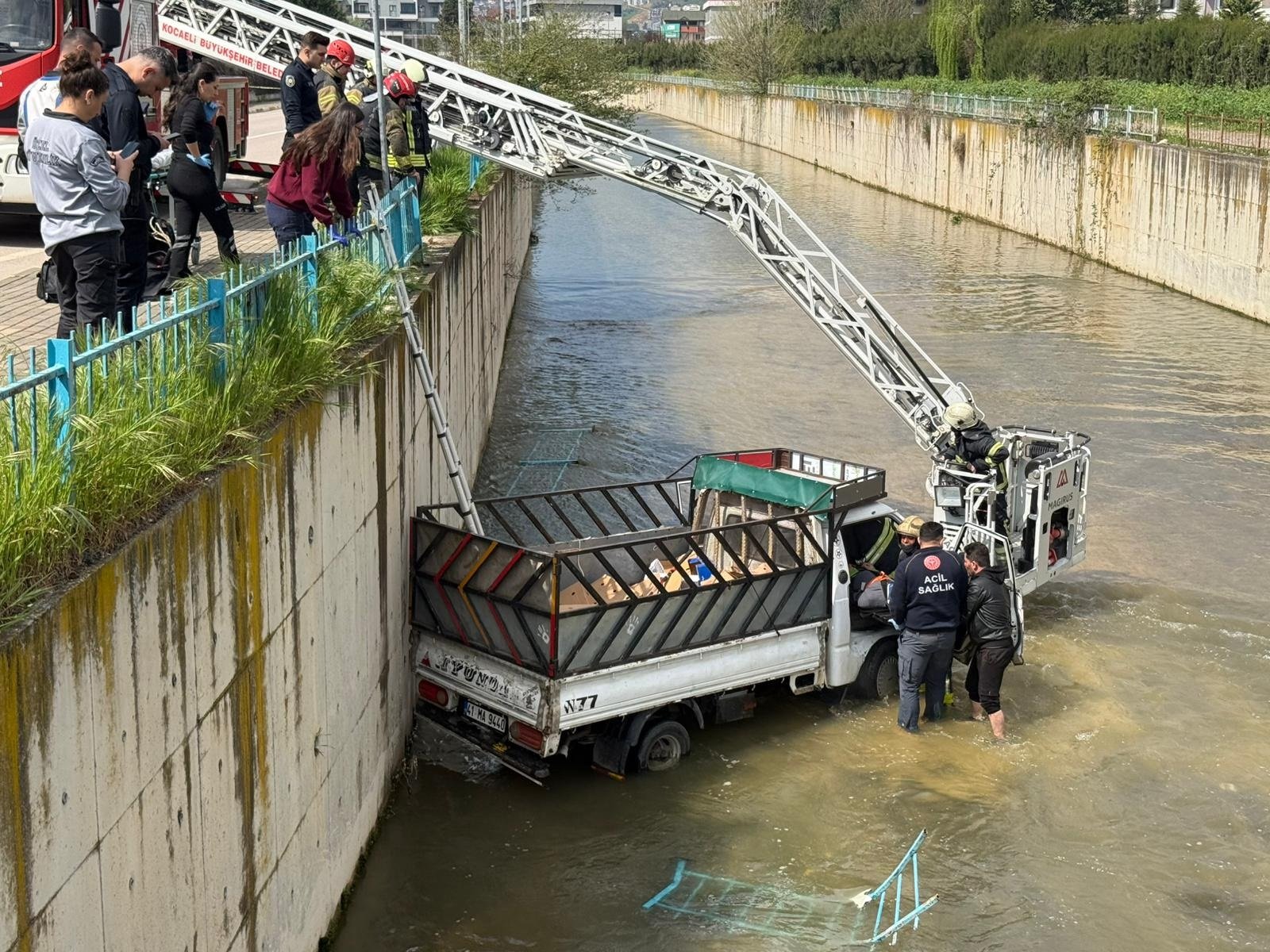 Ardacan UZUN/İZMİT (Kocaeli), (DHA)- KOCAELİ’nin İzmit ilçesinde dereye düşen kamyonetin