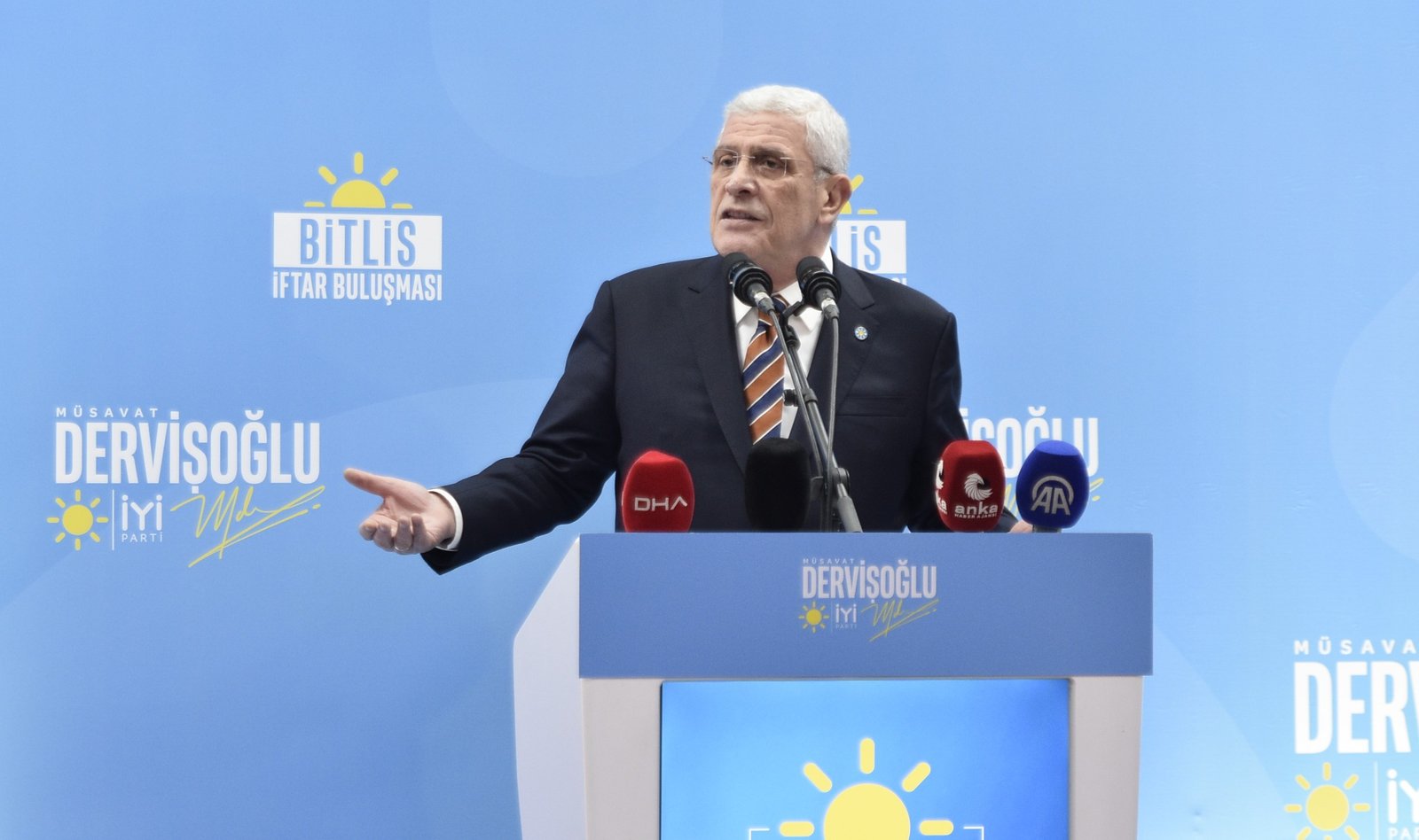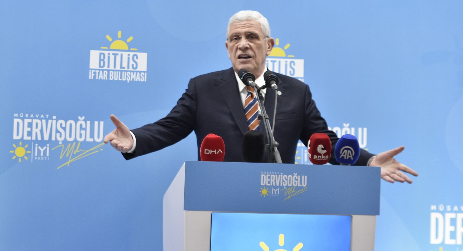 İYİ Parti Genel Başkanı Müsavat Dervişoğlu, Muş’taki programının ardından Bitlis’te partisi tarafından bir düğün salonunda düzenlenen iftar programına katıldı İftar programında İYİ Parti Genel Merkezi yöneticileri, İYİ Parti Bitlis İl Başkanı Ziya Yoldaş, bazı sivil toplum kuruluşu temsilcileri, şehit aileleri, gaziler ve çok sayıda partili de yer aldı. Programda partililere seslenen Dervişoğlu, terör örgütü PKK elebaşı Abdullah Öcalan’a yönelik ‘umut hakkı’ tartışmalarına değinerek, “Bu, millete sorulsun. Abdullah Öcalan, umut hakkına kavuşup milletin arasına karışsın mı, yoksa İmralı’daki hücresinde mi kalsın? Bunun kararını millet versin” dedi.
