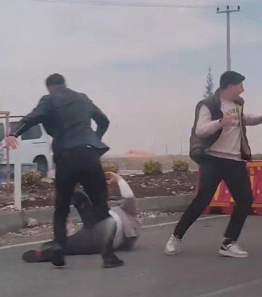 Olay, öğle saatlerinde Diyarbakır-Mardin kara yolunda meydana geldi. Trafikte iki araç sürücüsü arasında henüz bilinmeyen nedenle tartışma çıktı. Kısa sürede büyüyen tartışma, tekme, tokat ve yumruklu kavgaya dönüştü. Yoldan geçenler tarafından cep telefonu kamerasıyla kaydedilen görüntülerde, 2 kişinin bir kişiyi yerde tekme, tokat ve yumruklarla darbettiği anlar yer aldı. (DHA)