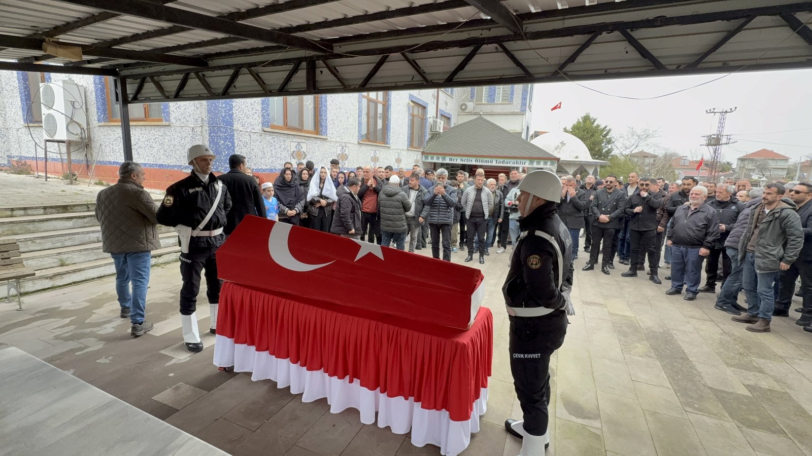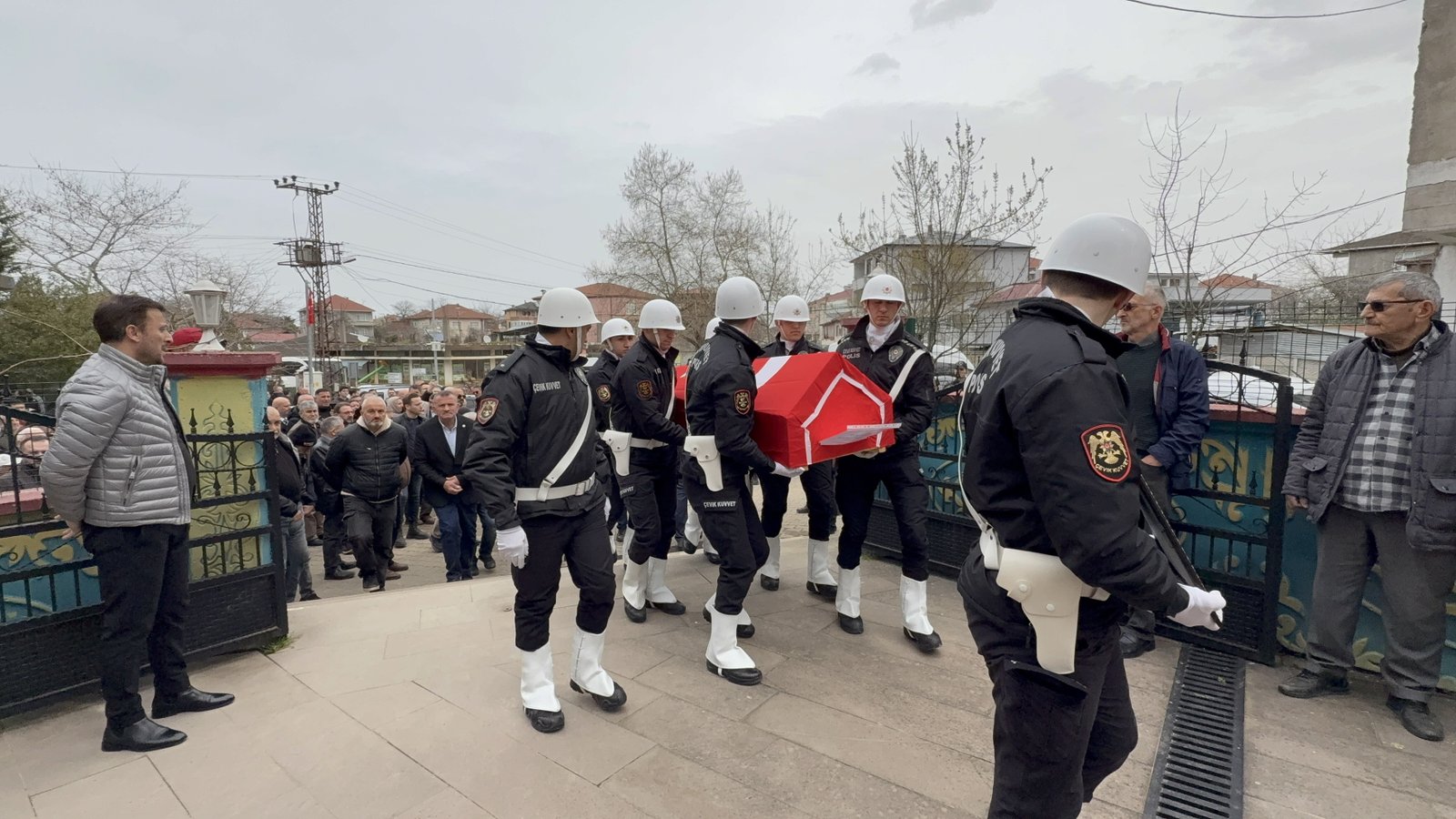 Silahlı saldırıda yaşamını yitiren ve yaklaşık 1 hafta önce polislikten emekliye ayrıldığı öğrenilen Talip Çakır’ın memleketi Sakarya’nın Karasu ilçesindeki Merkez Camisi’ndeki cenazesine ailesi, yakınları ile bölge halkı katıldı. Yakınları Çakır’ın Türk bayrağına sarılı tabutunun önünde gözyaşı döktü. Çakır, öğle vakti kılınan cenaze namazının ardından gözyaşlarıyla Merkez Mezarlığı’nda son yolculuğuna uğurlandı. (DHA)