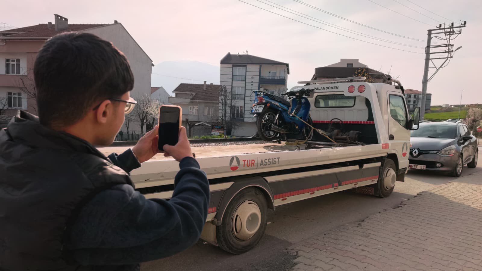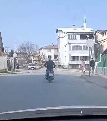 Motosikletlinin fotoğrafını çeken Yasin A., “İşe gidiyordum yakalandım. Abartı egzozlu gezmeyin yakalarlar. Devlet yakaladı bizi” dedi. (DHA)