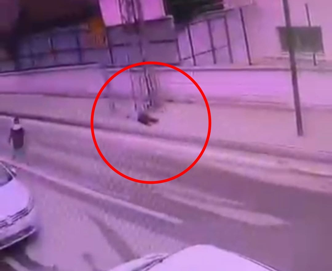Polis olayla ilgili inceleme başlatırken, olay anı çevredeki bir iş yerinin güvenlik kamerasına yansıdı. (DHA)