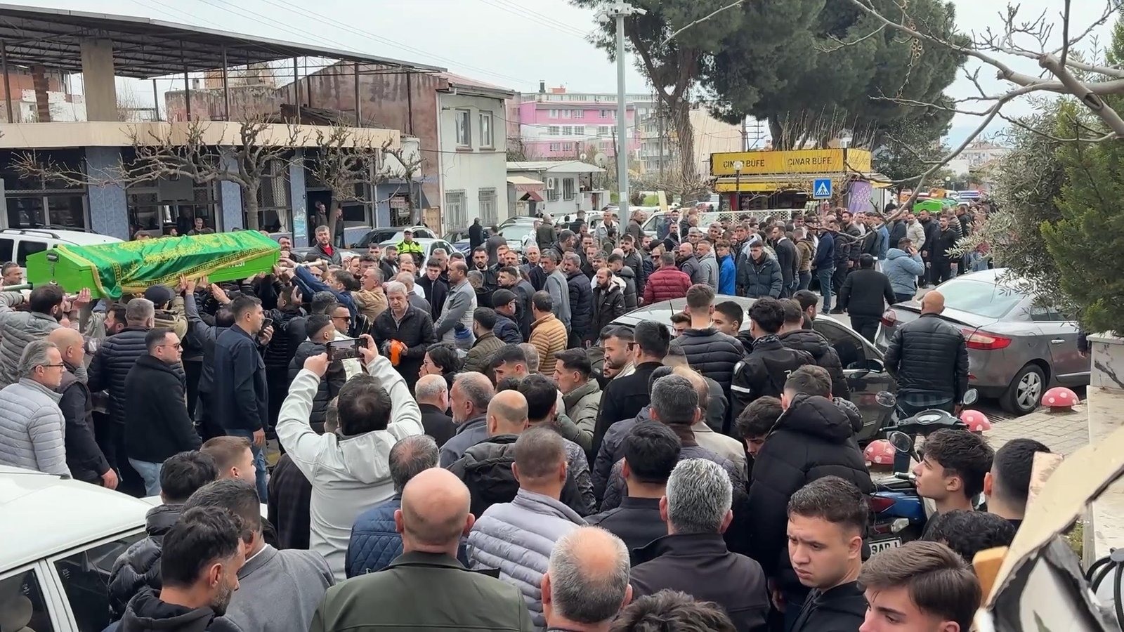 Aydın’da Umut Kuru tarafından işlettikleri fırında tabancayla öldürülen eski Aydınspor Kulübü Başkanı Erhan Özlüer ve kardeşi Ayhan Özlüer için bugün öğlen Kemer Mahallesi Kocaçınar Camii’nde cenaze namazı kılındı. Cenazeye Dost Parti Genel Başkanı Rıdvan Eşin, AK Parti Aydın Milletvekili Ömer Özmen, MHP Aydın İl Başkanı Osman Gazi Cihangiroğlu, MHP MYK Üyesi Burak Pehlivan’in yanı sıra siyaset, spor ve iş dünyası temsilcileri ile çok sayıda vatandaş katıldı. Cami avlusuna sığmayan kalabalık, dışarı taştı. Eski hakem olan Erhan Özlüer’in tabutunun üstüne hakem forması serildi. Kılınan namazın ardından iki kardeşin bir süre omuzlarda taşınan cenazeleri Kemer Mezarlığı’na götürülüp, yan yana toprağa verildi.