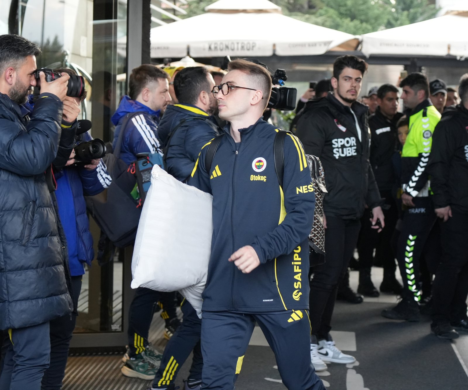 Yarın Zecorner Kayserispor’a konuk olacak Fenerbahçe saat 17.00’de havayolu ile Kayseri’ye ulaştı. Fenerbahçeli çok sayıda taraftar takımlarını karşılamak için havalimanı girişine ve takımın konaklayacağı otelin önüne geldi. Sarı lacivertlileri taşıyan otobüs otele geldiğinde çok sayıda taraftar futbolculara sevgi gösterilerinde bulundu.