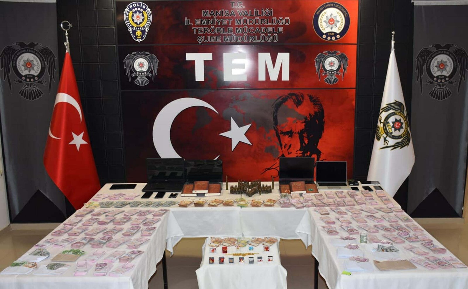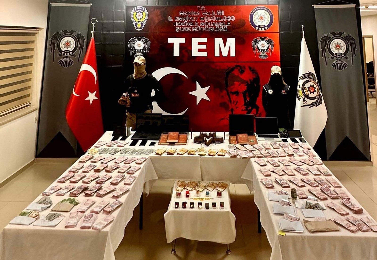 Düzenlenen eş zamanlı operasyonlarda şüphelilerden 44’ü gözaltına alındı. Diğer 3 şüphelinin yurt dışında olduğu belirlendi. Şüphelilerin ev, iş yeri, araç ve üzerlerindeki aramalarda; çok sayıda örgütsel doküman ve kitap, dijital materyal, örgüte ait olduğu değerlendirilen güncel kur değeri yaklaşık 22 milyon 500 bin TL olan Türk lirası, altın, avro ve dolara el geçirildi.