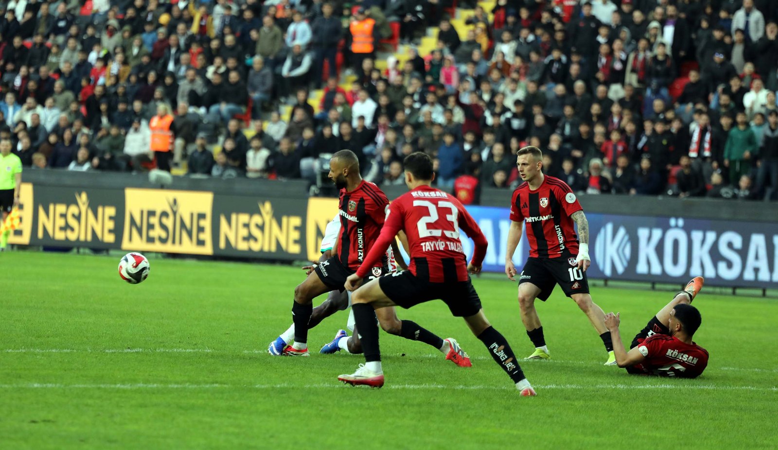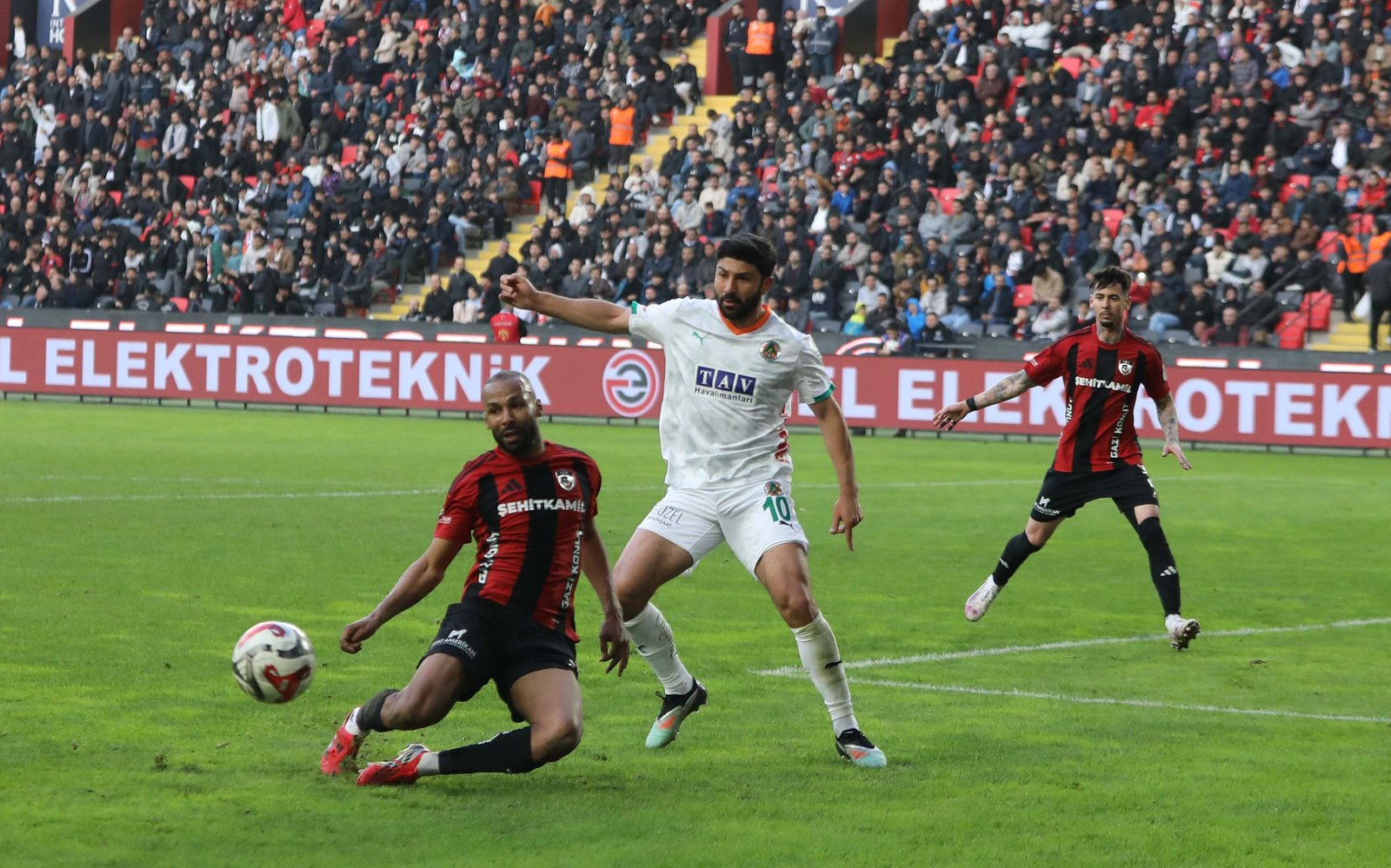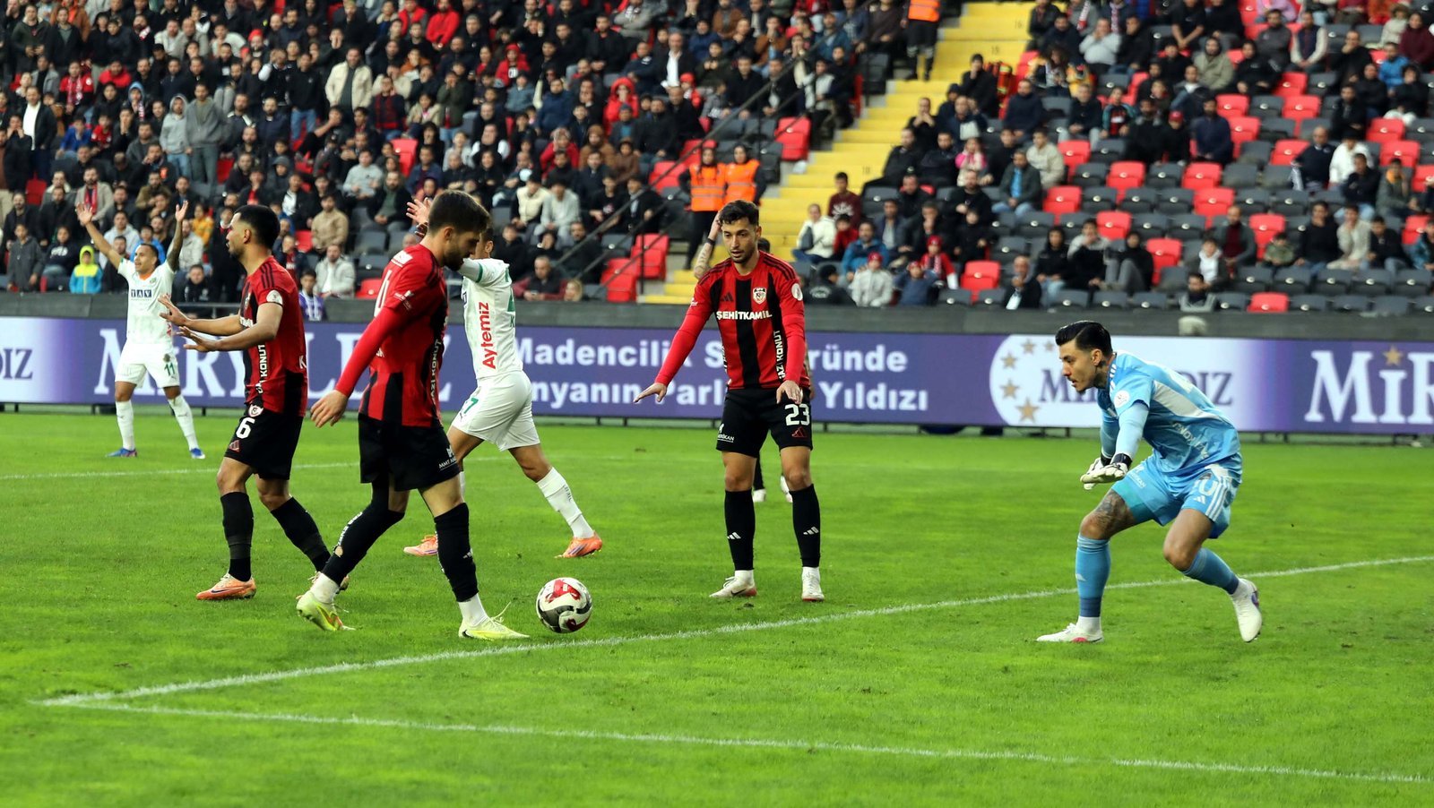 22’nci dakikada Gaziantep FK’da Maxim’in serbest vuruşunda karambolde seken topu Tayyip Talha’dan önce Alanyaspor savunması uzaklaştırdı.