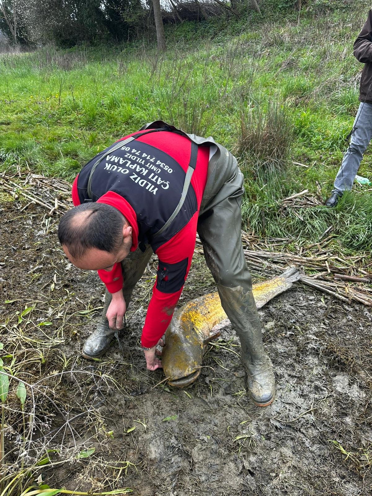Ani su çekilmesi nedeniyle göletteki bazı balıklar su ile dereye sürüklenirken, bazı balıklar sığ bölgede kaldı. 2 yayın, 1 sazan ve 1 turna balığı vatandaşlar tarafından alındı. Yer altından geçen mağara hattında herhangi bir göçük oluşup oluşmadığı ve yerleşim alanları açısından risk teşkil edip etmediğinin yapılacak teknik incelemeler sonucunda netlik kazanacağı öğrenildi. Diğer yandan çekilen gölet dronla görüntülendi. (DHA)