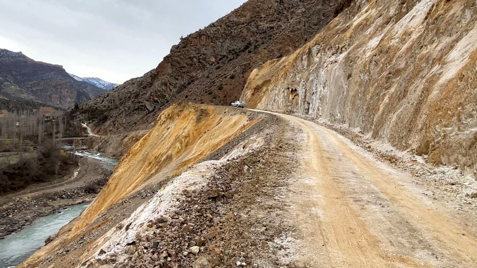 Türkiye’nin en sarp ve engebeli coğrafyalarından biri olan Artvin’de sürücüler, özellikle köyler arasında dağlık güzergahlarda her gün uçurum kenarında direksiyon sallıyor. Daralan, keskin virajlarla kıvrılan ve yer yer tek şeride düşen yollar, özellikle yük taşıyan sürücüler için hayati riskler barındırırken; dik rampalar, ani dönüşler ve zorlu hava koşulları sürüşü daha da güç hale getiriyor. Kentte özellikle köy yollarında yaşanan ulaşım zorlukları, sürücülerin günlük mesaisini bir mücadeleye dönüştürüyor. Sürücülerin, dar, virajlı ve dik rampalarla dolu yollarda direksiyon başında zorlu mesaisi dronla görüntülendi. Uçurumların yanı sıra heyelanla taş ve kaya düşme riskine rağmen ağır tonajlı araçlarla dağlık güzergahlarda seyretmek zorlukları katlıyor.