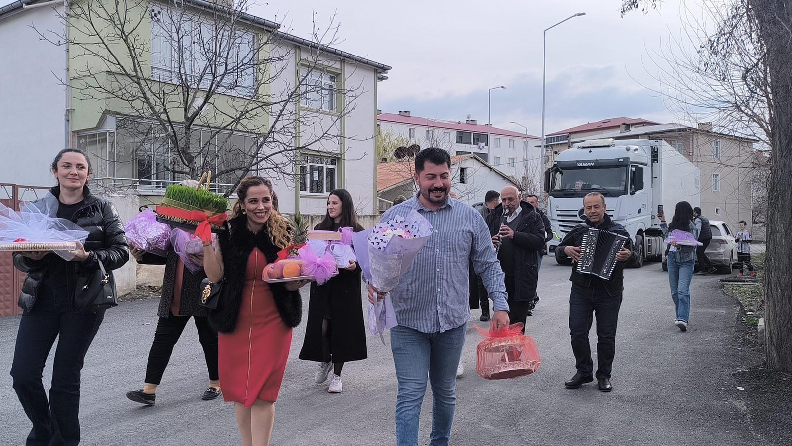 Kentte sürdürülen gelenek kapsamında; çerez, tatlı, kıyafet ve sembolik hediyelerden oluşan honcalar, aileler arasındaki bağları güçlendiriyor. Hazırlanan tepsiler, akraba ve yakınların katılımıyla kız evine götürülerek Nevruz coşkusu paylaşılıyor. (DHA)
