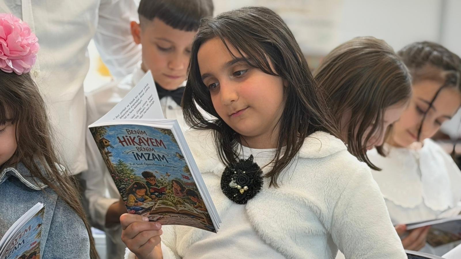 Ali Utku Doruk Yüceer (9) ise yazdığı hikayenin kitaba dönüşmesinin kendisini çok mutlu ettiğini söyleyerek, “Öğretmenimiz ve ailemiz sayesinde bu hikayeleri kitaba dönüştürdük. Çok güzel bir kitap oldu” dedi.