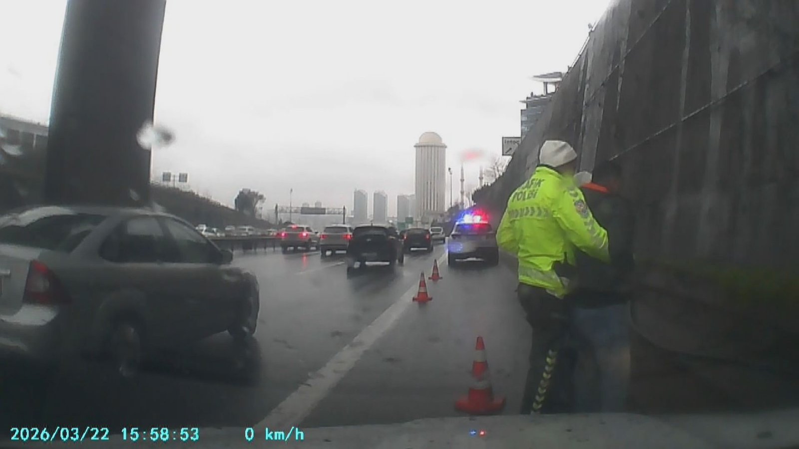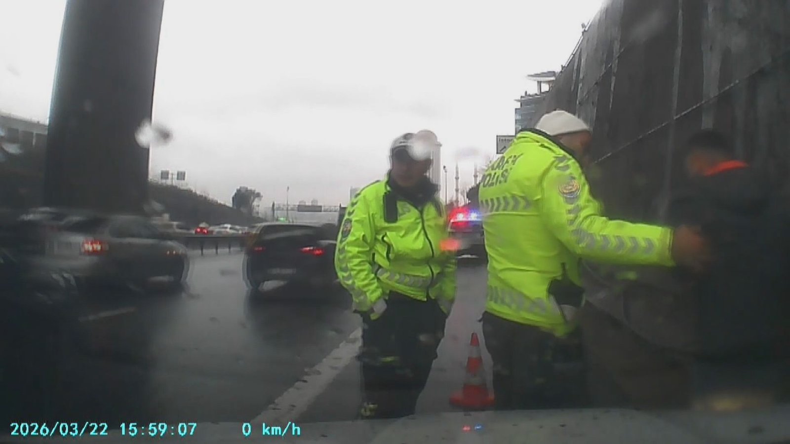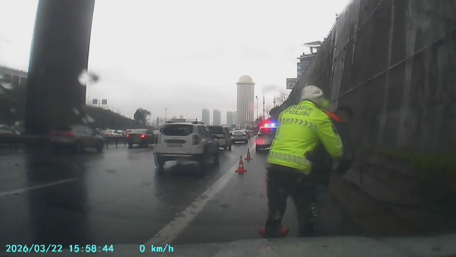 Olay, dün saat 16.00 sıralarında TEM Otoyolu İSTOÇ mevkiinde meydana geldi. Küçükçekmece’de yaşayan Ekrem Özpınar, bayram ziyareti sonrası Edirne istikametinde aracıyla seyir halindeyken torpidodan aldığı şekeri yemeye başladı. Şekerin boğazına kaçmasıyla nefessiz kalan sürücü bir anda fenalaştı. Trafikte ilerlemeye devam eden Özpınar, uygulama noktasındaki polis ekiplerini görünce durdu. Kornaya basıp polis ekiplerden yardım isteyen sürücü, bir polis memurunun Heimlich manevrası ile kurtuldu. Özpınar, onu kurtaran polis memuruna teşekkür ederek yoluna devam etti. Yaşananlar sürücünün araç içi kamerasıyla kaydedildi.