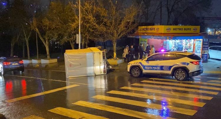 Baran AKKAYA-Uğur ŞAHİN/İSTANBUL,(DHA)- BAYRAMPAŞA’da şoförünün yayalara çarpmamak için manevra yaptığı kamyonet kontrolden çıkarak yan yattı. 3 kişinin yaralandığı kaza iş yerinin güvenlik kamerasına yansıdı.