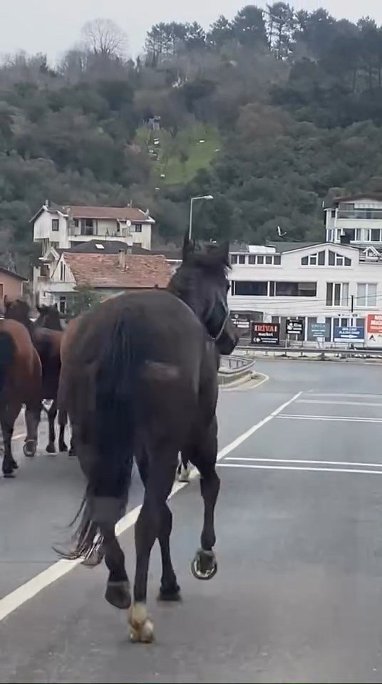 Olay, saat 12.00 sıralarında Riva yolu üzerinde meydana geldi. Yolda koşarak ilerleyen sahipsiz atları fark eden sürücüler, hayvanlara çarpmamak için hızlarını düşürdü. Trafikte kısa süreli aksama yaşanırken, atların Riva girişinde durduğu görüldü. Bir süre bölgede bekleyen atlar, daha sonra ters istikamete yönelerek gözden kayboldu. Yaşananlar, o sırada yoldan geçen bir sürücünün cep telefonu kamerasına yansıdı.