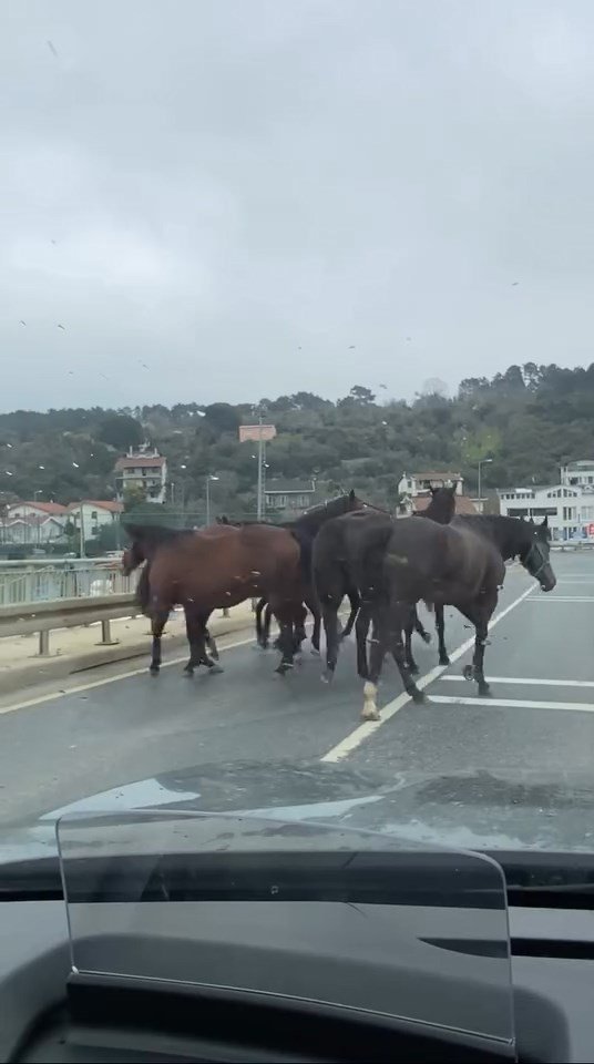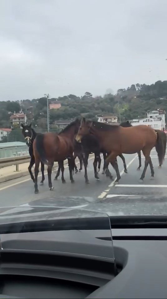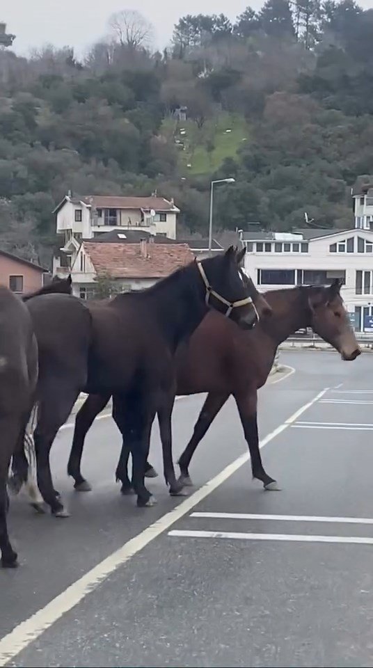 İstanbul- Beykoz’da başıboş atlar trafiği tehlikeye soktu