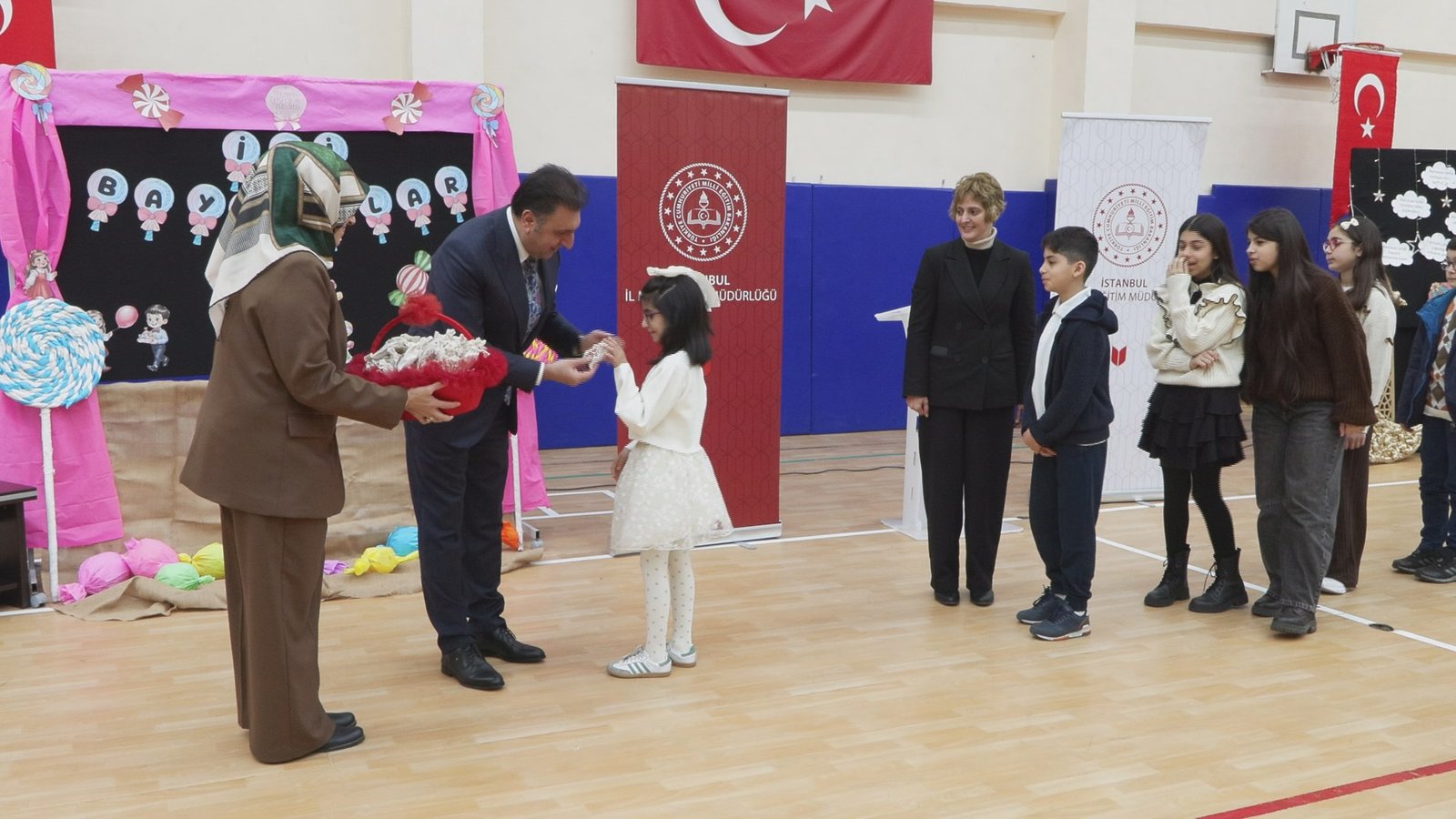 İSTANBUL, (DHA)- BAHÇELİEVLER’DE bulunan Mehmet Akif Ersoy Ortaokulu’nda bayram dolayısıyla düzenlenen etkinlikte, öğrenciler, öğretmenler ve veliler bir araya geldi. Burada konuşan İl Milli Eğitim Müdürü Murat Mücahit Yentür, “Allah her günümüzü bayram kılsın. Bayram sevincini, coşkusunu dünyanın her bir yanına yansıtsın. Çocukların kalbindeki güzellik, çocukların gülümsemesi dünyayı sarsın. Barışın ve güzelliğin özellikle coğrafyamızdaki kardeş ve komşu ülkelere bu bayram vesilesiyle de yayılmasını istiyoruz” dedi.