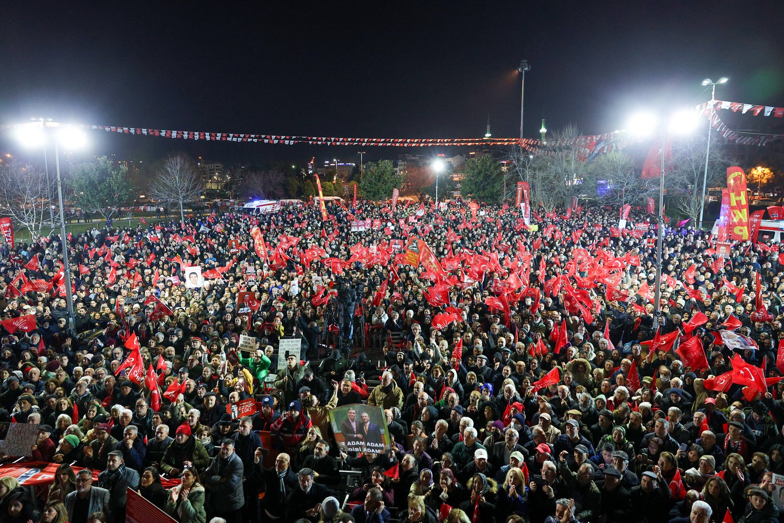 CHP Genel Başkanı Özgür Özel, “Sizlere bakınca ben görüyorum ki hiçbir vakit karanlık kazanamaz. Güneş doğar, aydınlık kazanır. Zulmedenler değil, zulme direnenler kazanır. Korkaklar değil, cesurlar kazanır. Berbatlar değil, güzeller kazanır. Size bakınca görüyorum ki biz kazanacağız. Bu gece yeniden bu soğukta on binleriz fakat elbette bir yanımız yeniden eksik. Birinci bölgede Beykoz Belediye Liderimiz Alaattin Köseler’e, Şile Belediye Liderimiz Özgür Kabadayı’ya, belediye meclisi üyelerimize, bürokratlarımıza, işçi arkadaşlarımıza bir selam yolluyoruz buradan onlara. Aslanlara selam olsun. Pendik’te 35 yıldır maalesef seçimleri kazanamadık. Lakin Pendik’e küsmedik, kusuru kendimizde aradık. Hakikat adayı aradık, eksik yanlarımızı aradık ve çabaladık. Bu seçimlerde Pendik’i yeniden kazanamadık lakin çok büyük bir muvaffakiyet yakaladık. Yüzde 43 oy aldık, küçük bir farkla Pendik’i kaybettik” diye konuştu.