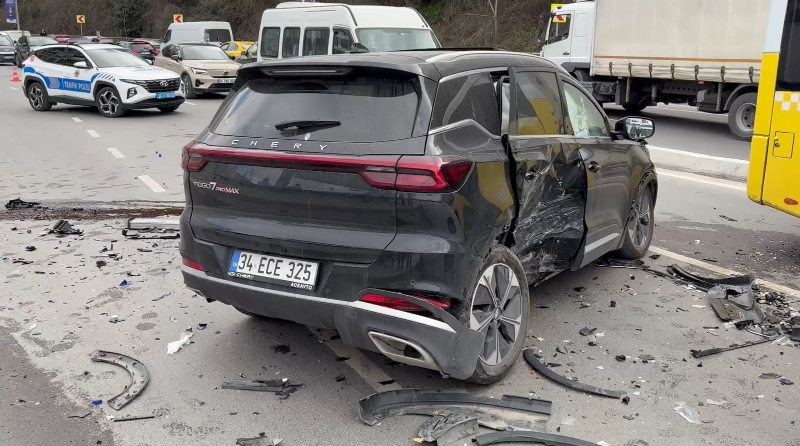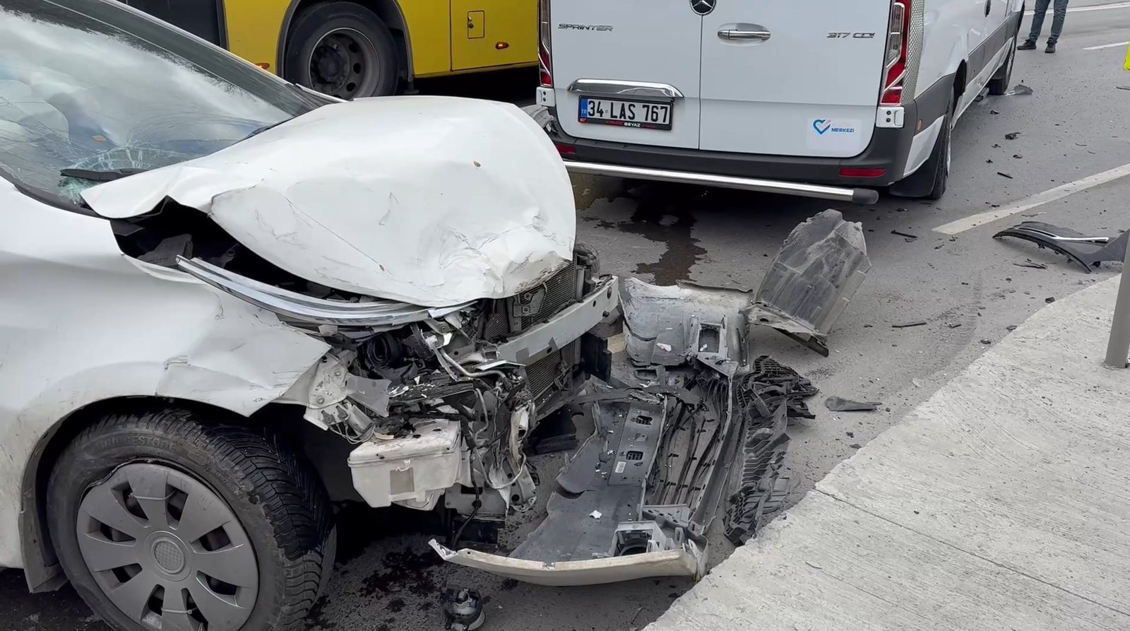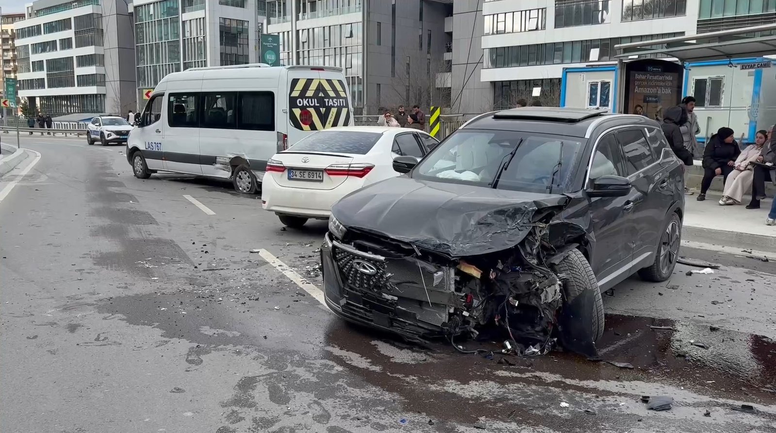 Kazada hasar oluşan servis minibüsünde yolcu olmadığı öğrenilirken, kazaya karışan 2 arabada bulunan Eren Fidan, Zehra Naz Polat, Melek Yelbay ve Esma Teper’in hafif formda yaralandığı öğrenildi. Polis takımı caddede trafik güvenliği sağlarken sıhhat grupları yaralılara müdahale etti. Birinci müdahaleleri olay yerinde yapılan yaralılar hastaneye kaldırıldı. Kaza nedeniyle caddede oluşan trafik yoğunluğu, araçların olay yerinden çekiciyle kaldırılmasının akabinde olağana döndü. Kazayla ilgili inceleme başlatıldı.