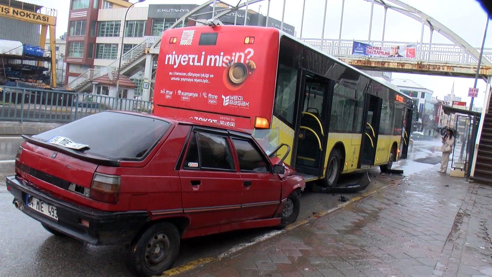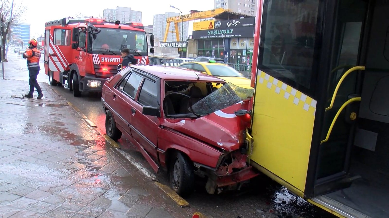 Kaza, saat 16.00 sıralarında Necip Fazıl Mahallesi Alemdağ Caddesi’nde meydana geldi. İddiaya göre, yağışlı havanın etkisiyle kayganlaşan yolda sürücüsünün direksiyon hakimiyetini kaybettiği seyir halindeki 34 MIE 493 plakalı otomobil, durakta yolcu almak için bekleyen 34 TN 1802 plakalı İETT otobüsüne çarptı. Kazanın etkisiyle otomobil sürücüsü araçta sıkıştı. Çevredekilerin ihbarı üzerine olay yerine itfaiye, acil sağlık ve polis ekipleri geldi. İtfaiye, sıkışan sürücüyü araçtan çıkardı. Sağlık ekiplerinin kontrollerinde kazada yaralandığı belirlenen sürücü ambulansla hastaneye kaldırıldı. Polis ekipleri ise kazaya ilişkin inceleme başlattı. (DHA)