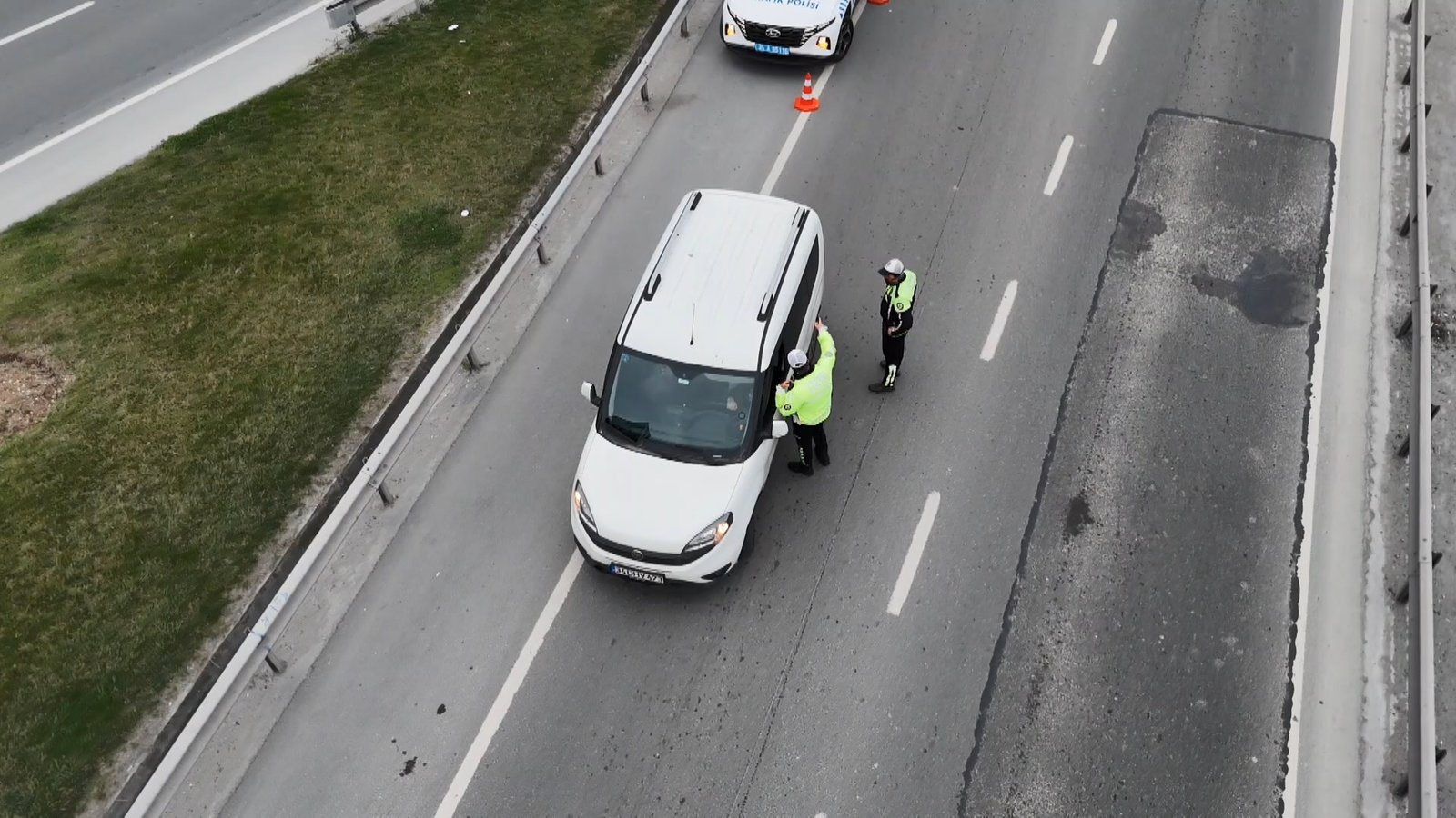 Emre KURT/İSTANBUL,(DHA) – Zeytinburnu Cevizlibağ D-100 yanyolunda transit yola bağlanırken ofset taralı alan ihlali yapan şoförler, dron dayanaklı kontrolle tespit edildi. Trafik Denetleme Şube Müdürlüğü takımları tarafından kurulan uygulama noktasında durdurulan şoförlere para cezası kesildi. Kontrol noktasında durdurulan şoför Serkan Çimenli, ” “Özellikle kaynakçılar emniyet şeridini kullananlara şimdiki cezalar bile az 500 bin, 1 milyon yazılmalı.” Şeklinde konuştu.