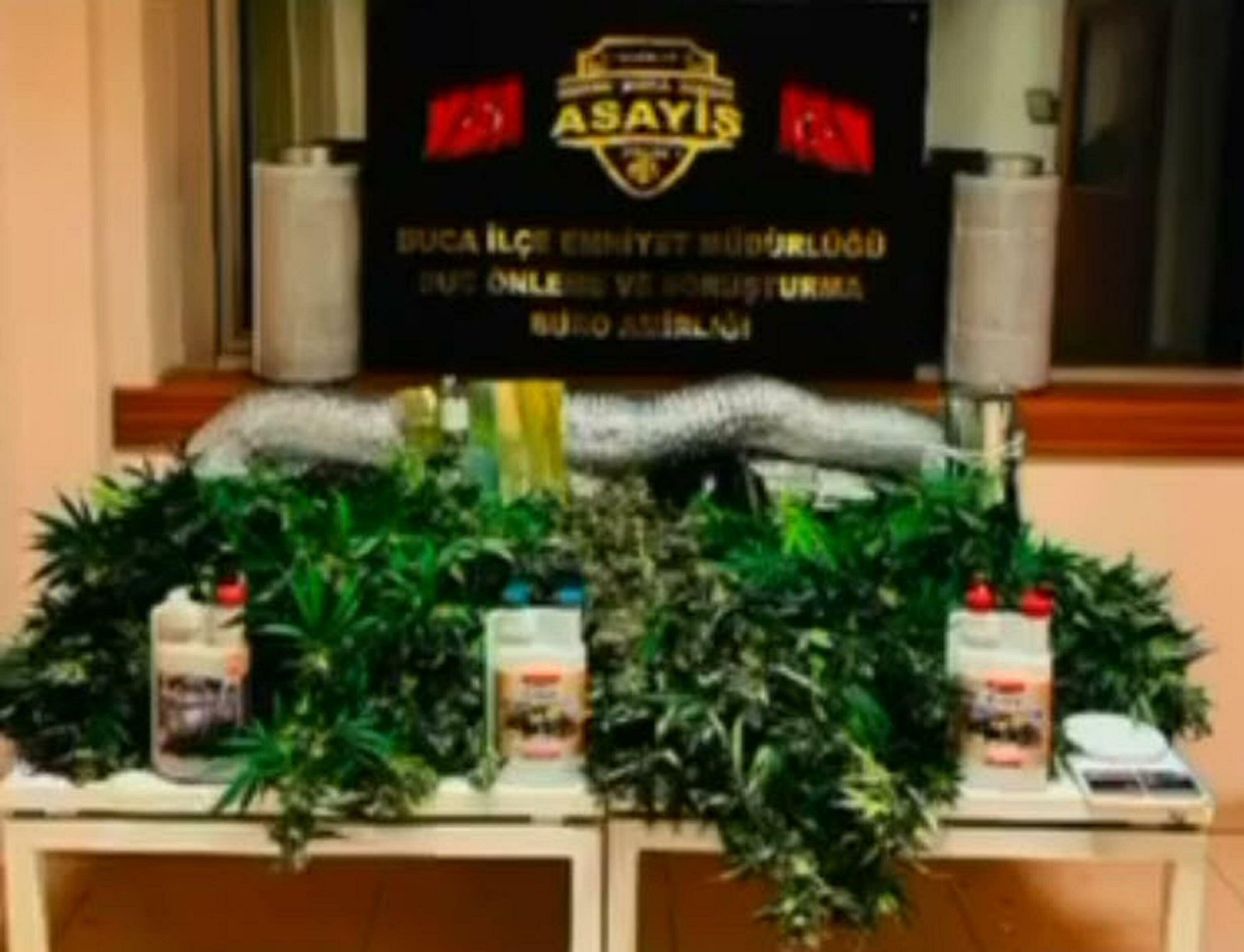 İl Emniyet Müdürlüğü Buca İlçe Emniyet Müdürlüğü ekipleri, istihbarat çalışmasıyla Kozağaç Mahallesi’ndeki bir evde Hint keneviri yetiştirildiği bilgisine ulaştı. Eve operasyon düzenleyen ekipler yapılan aramada, 331 gram esrar, 11 kök Hint keneviri, hassas terazi ile Hint keneviri yetiştirmekte kullanıldığı belirtilen çeşitli markalara ait havalandırma sistemleri, ışıklandırma düzenekleri ve bitki besinleri ile çok sayıda çeşitli ekipman ele geçirildi. Evdeki İran uyruklu şüpheliler Ferşid İ. ve Ömer Ç. gözaltına alındı. Şüphelilerden Ferşid İ.’nin ‘Vergi Usul Kanununa Muhalefet’ ve ‘Güveni kötüye kullanma’ suçlarından arandığı da ortaya çıktı.