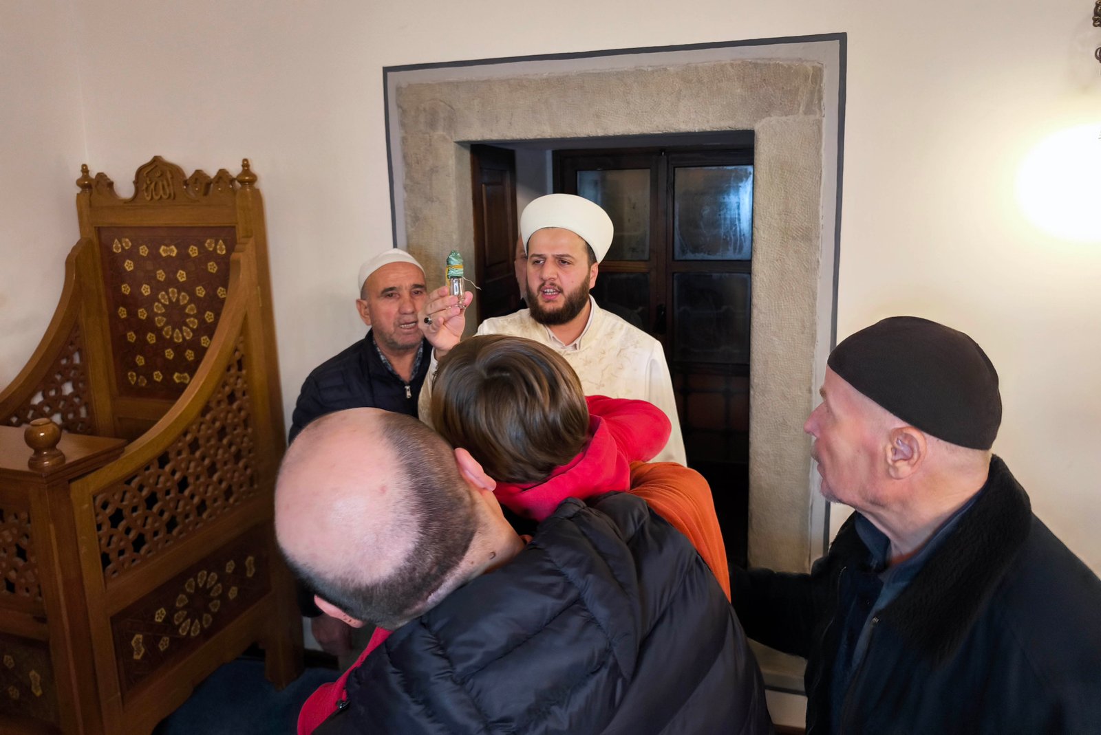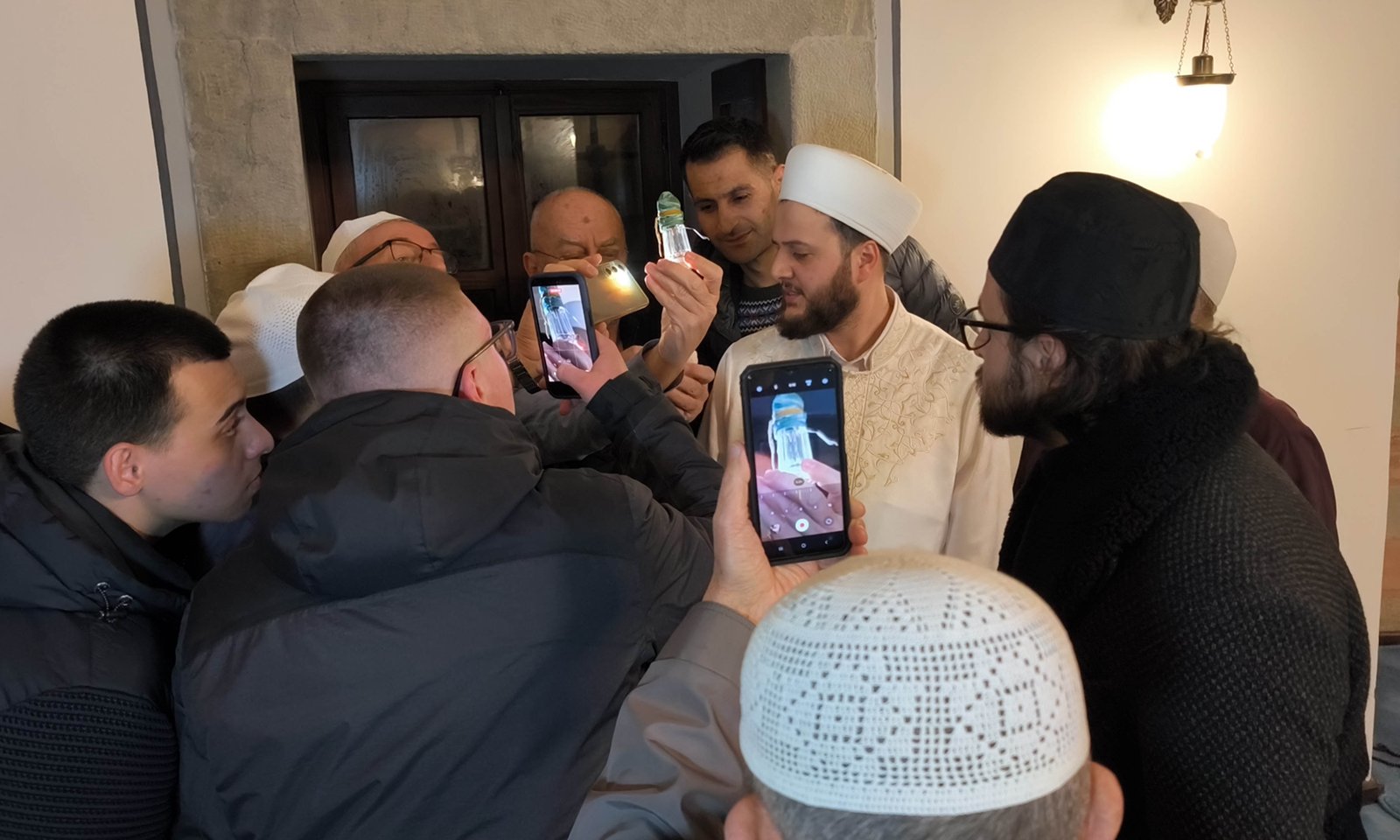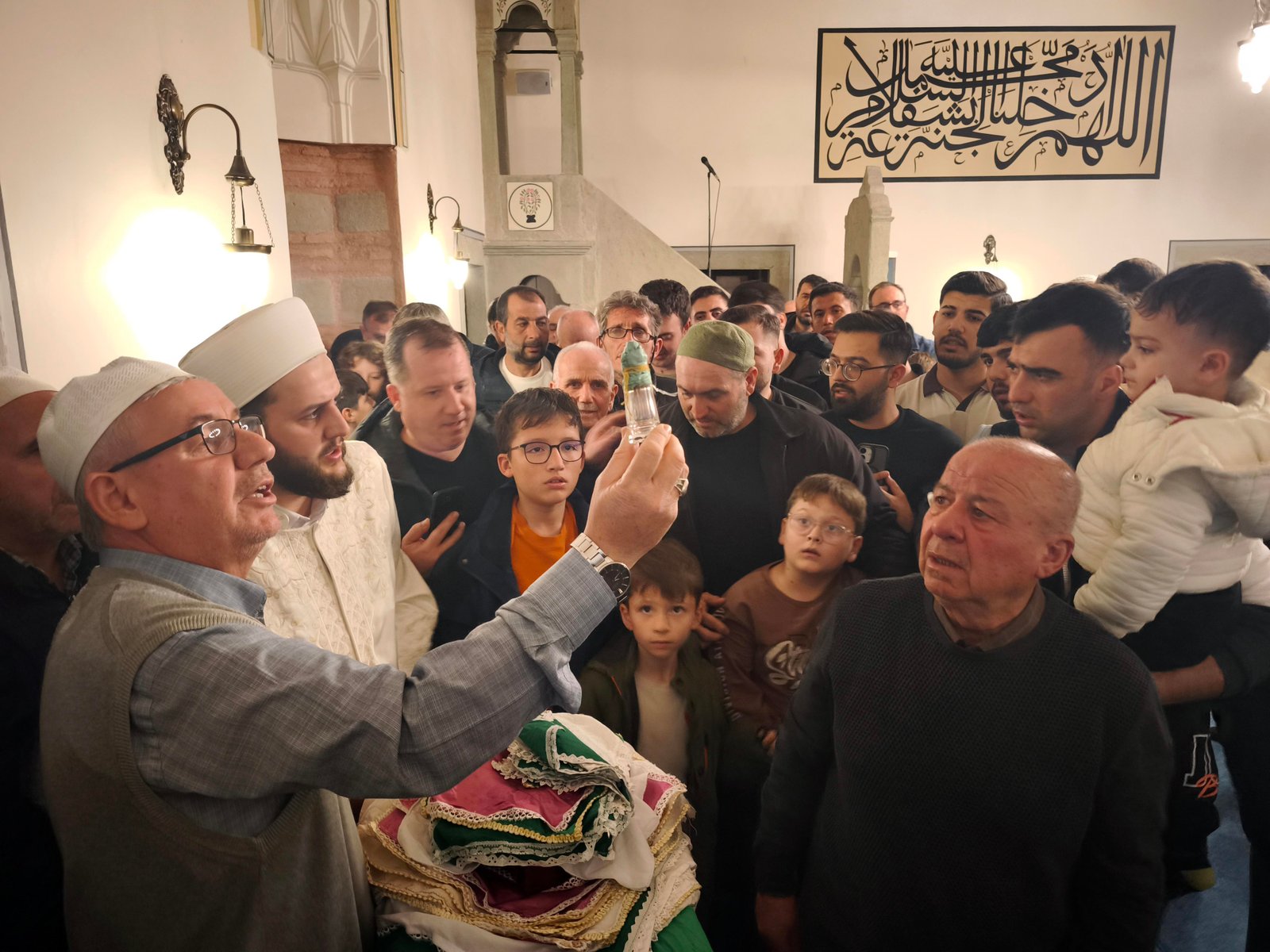 Vatandaşlar, Sakal-ı Şerif’e dokunup öpebilmek için birbirleriyle yarışırken, cami görevlileri izdiham yaşanmaması için sık sık cemaati uyardı. Bazı vatandaşlar Sakal-ı Şerif’i görünce gözyaşlarını tutamazken, bazıları ise cep telefonu kameralarıyla görüntüledi. (DHA)
