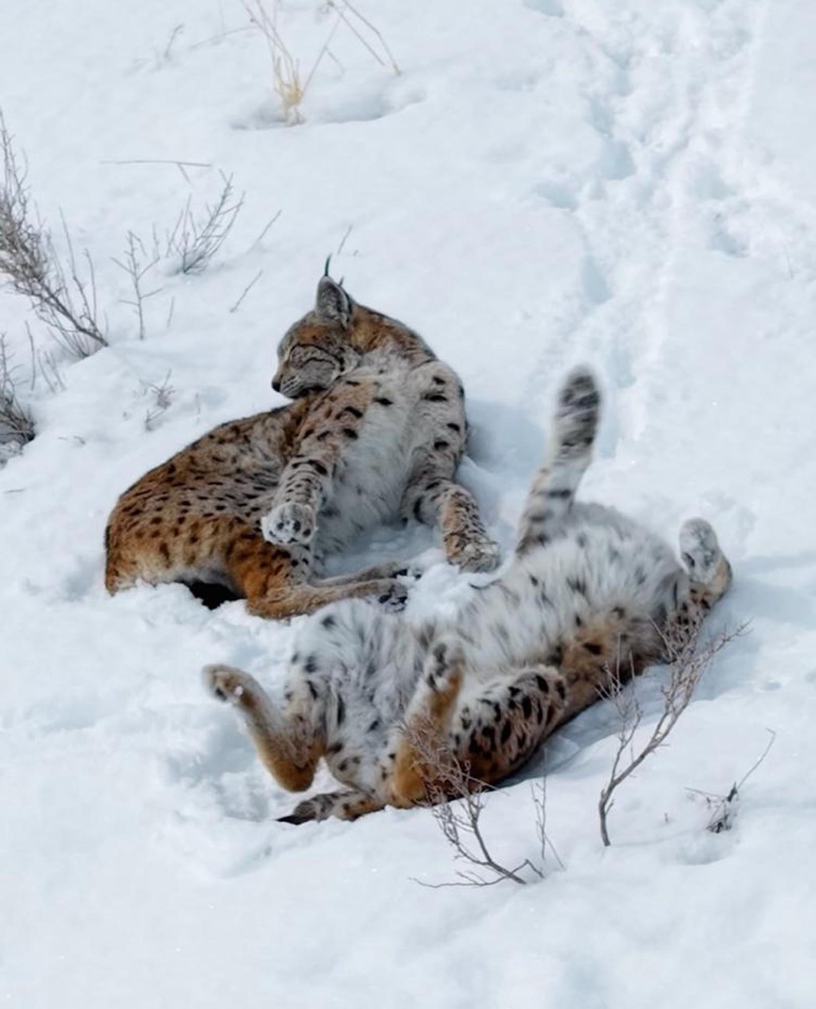 Kar üstündeki vaşaklar görüntülendi