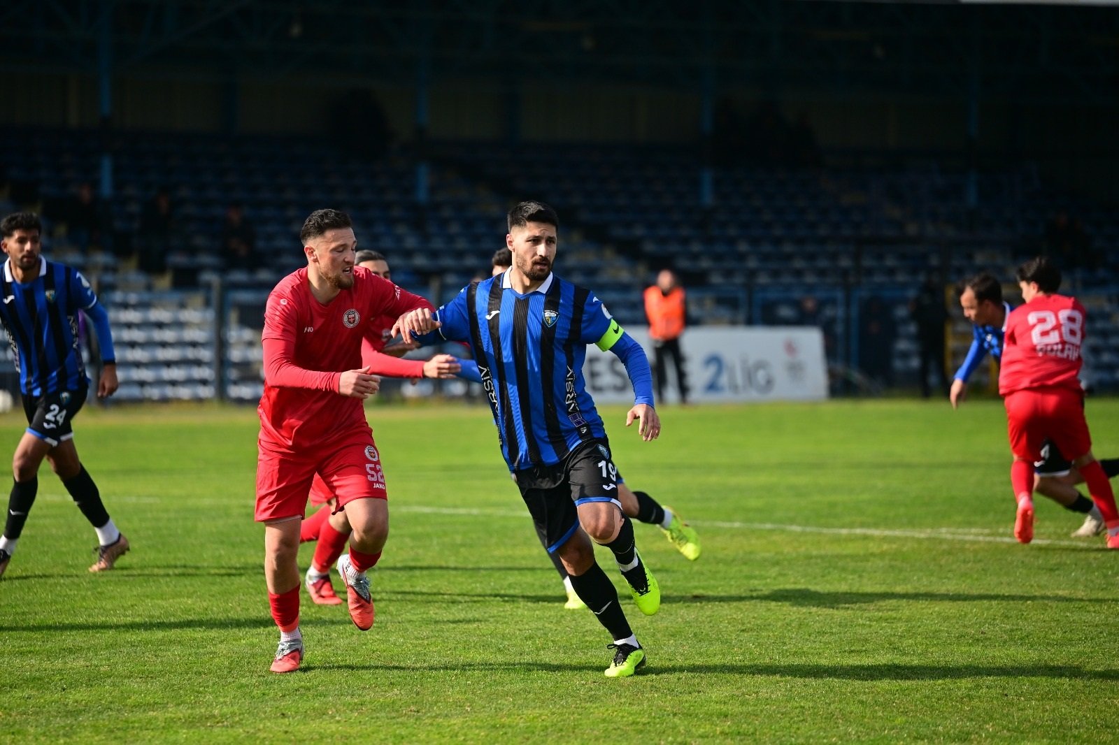 TFF 2’nci Lig Beyaz Grup 32’nci hafta karşılaşmasında Karacabey Belediyespor, sahasında ağırladığı Karaman Futbol Kulübü’nü 1-0 mağlup etti. (DHA)