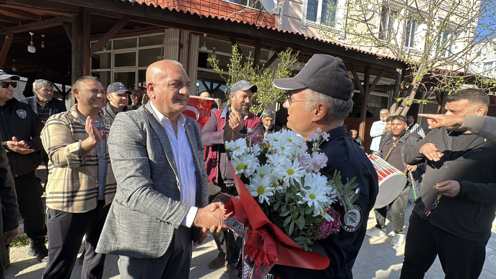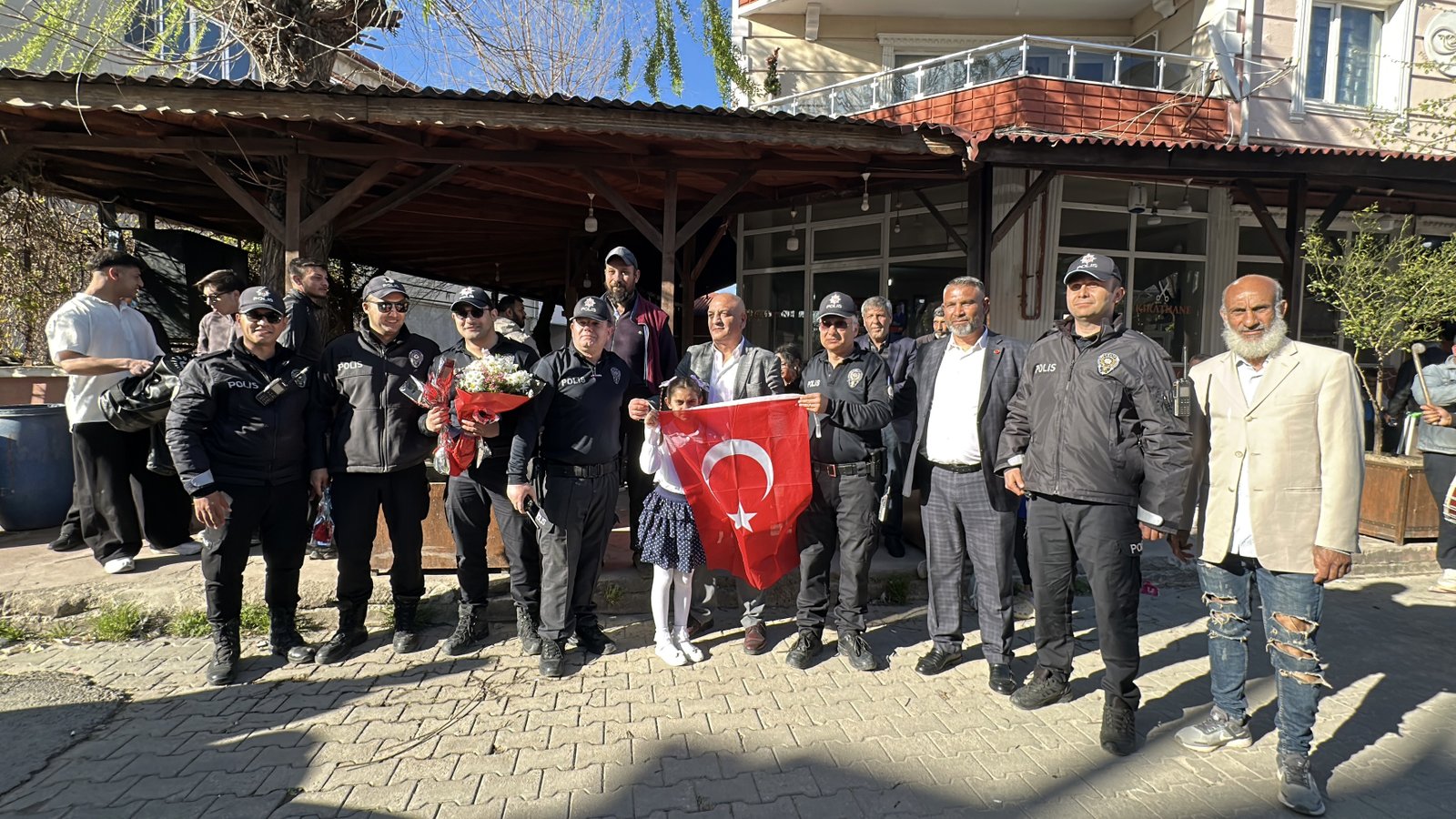 Umut IŞIK/ EDİRNE, (DHA)- EDİRNE’de çoğunluğu Romanlardan oluşan mahalle sakinleri, sahte kavga ihbarı vererek çağırdıkları polis ekiplerini, çiçek ve Türk bayraklarıyla karşılayıp, Polis Haftası’nı kutladı.