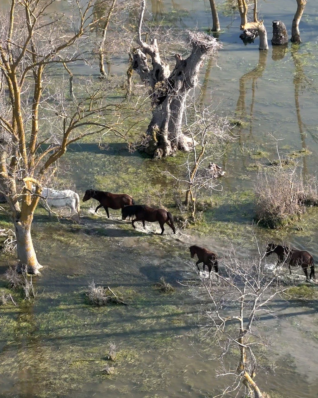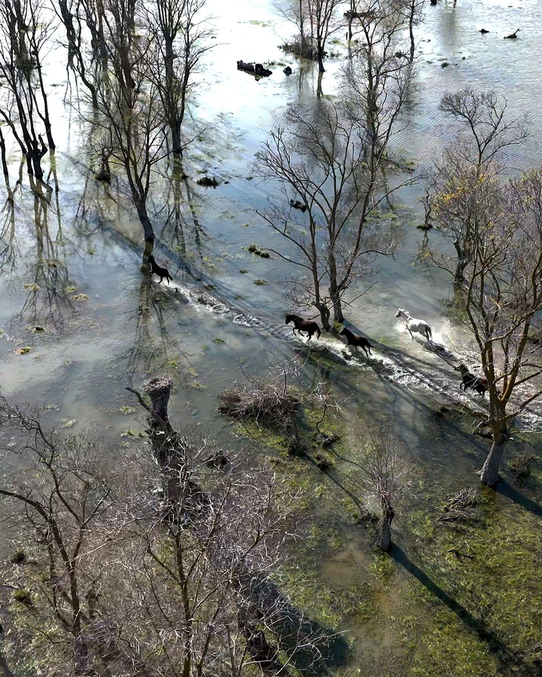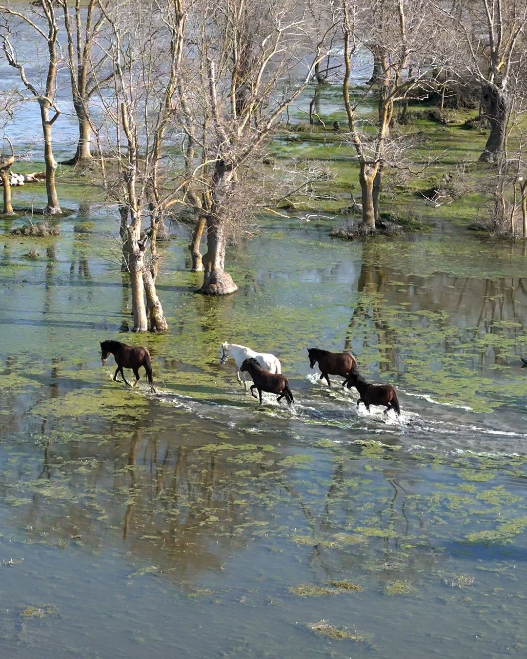 Emre ŞAHİNOL/BAFRA (Samsun), (DHA)- SAMSUN’da Kızılırmak Deltası’nda yılkı atları, dronla görüntülendi.