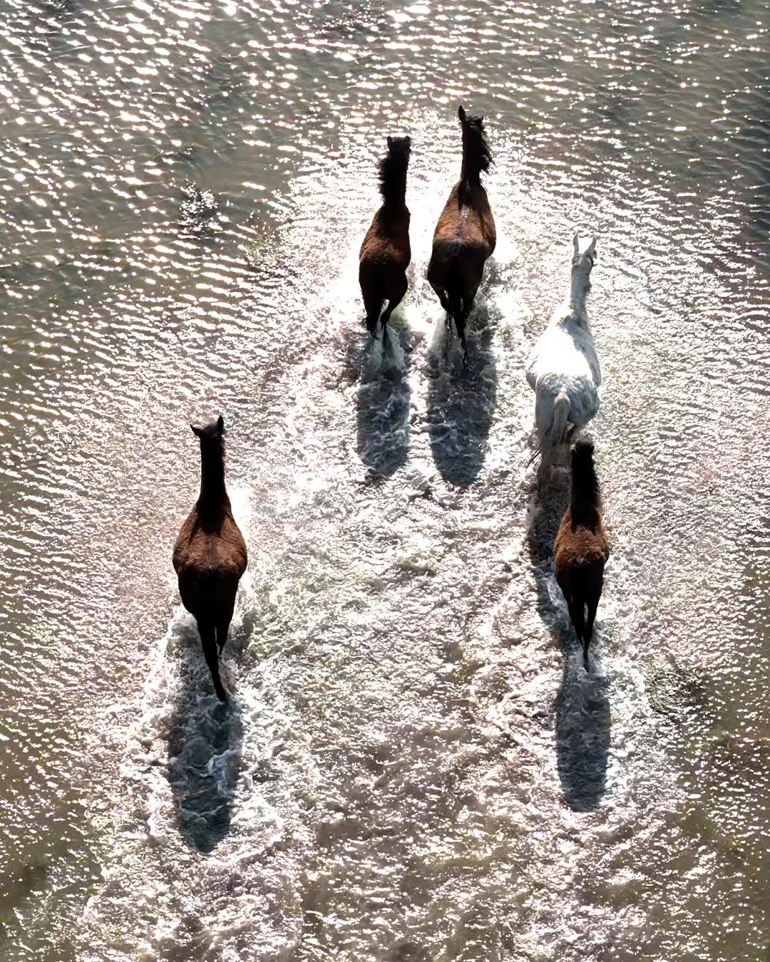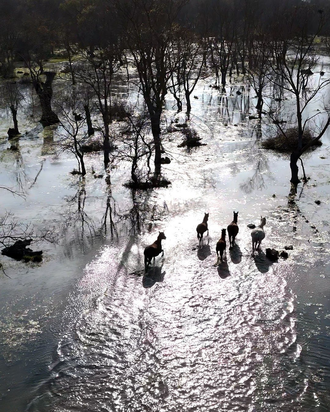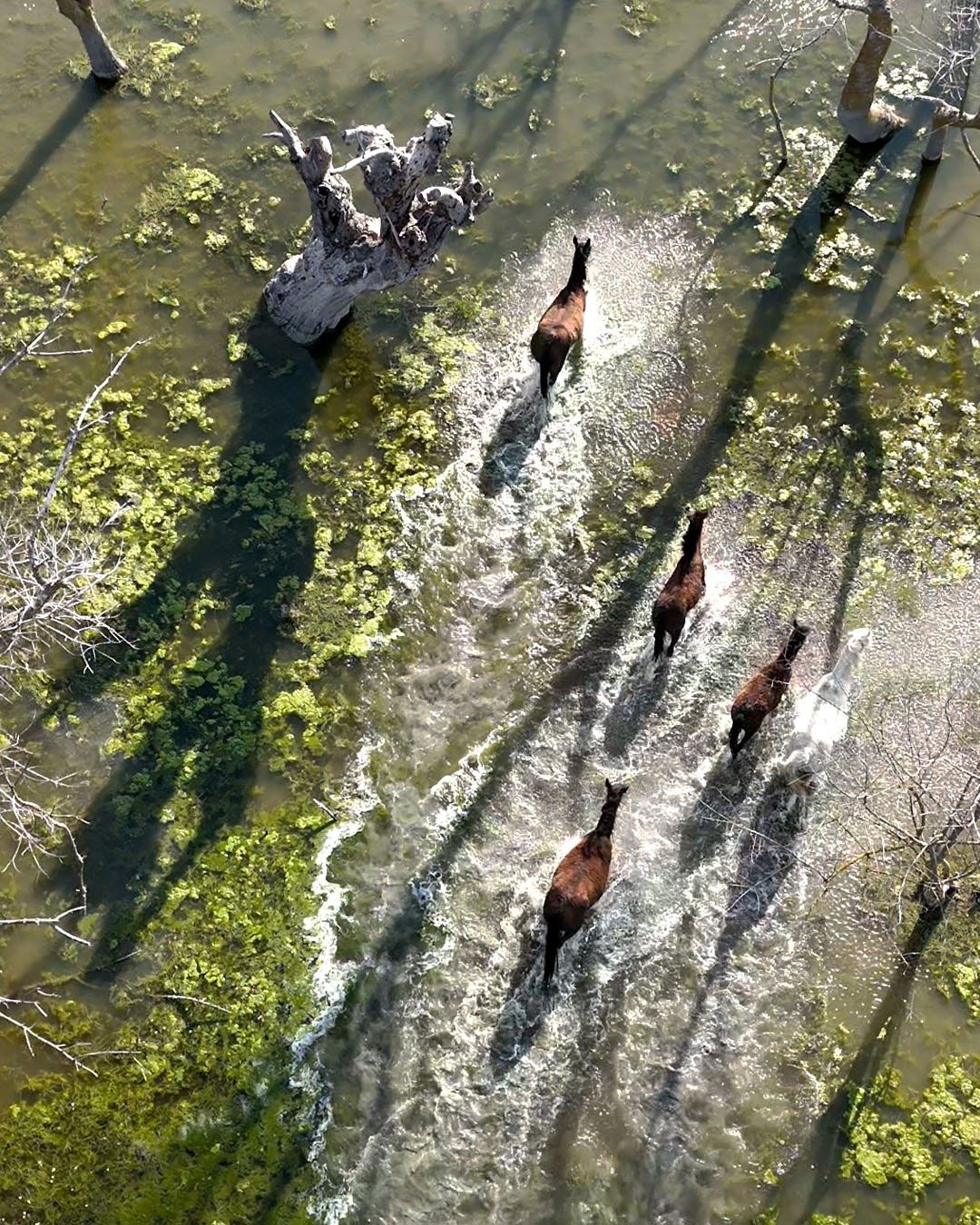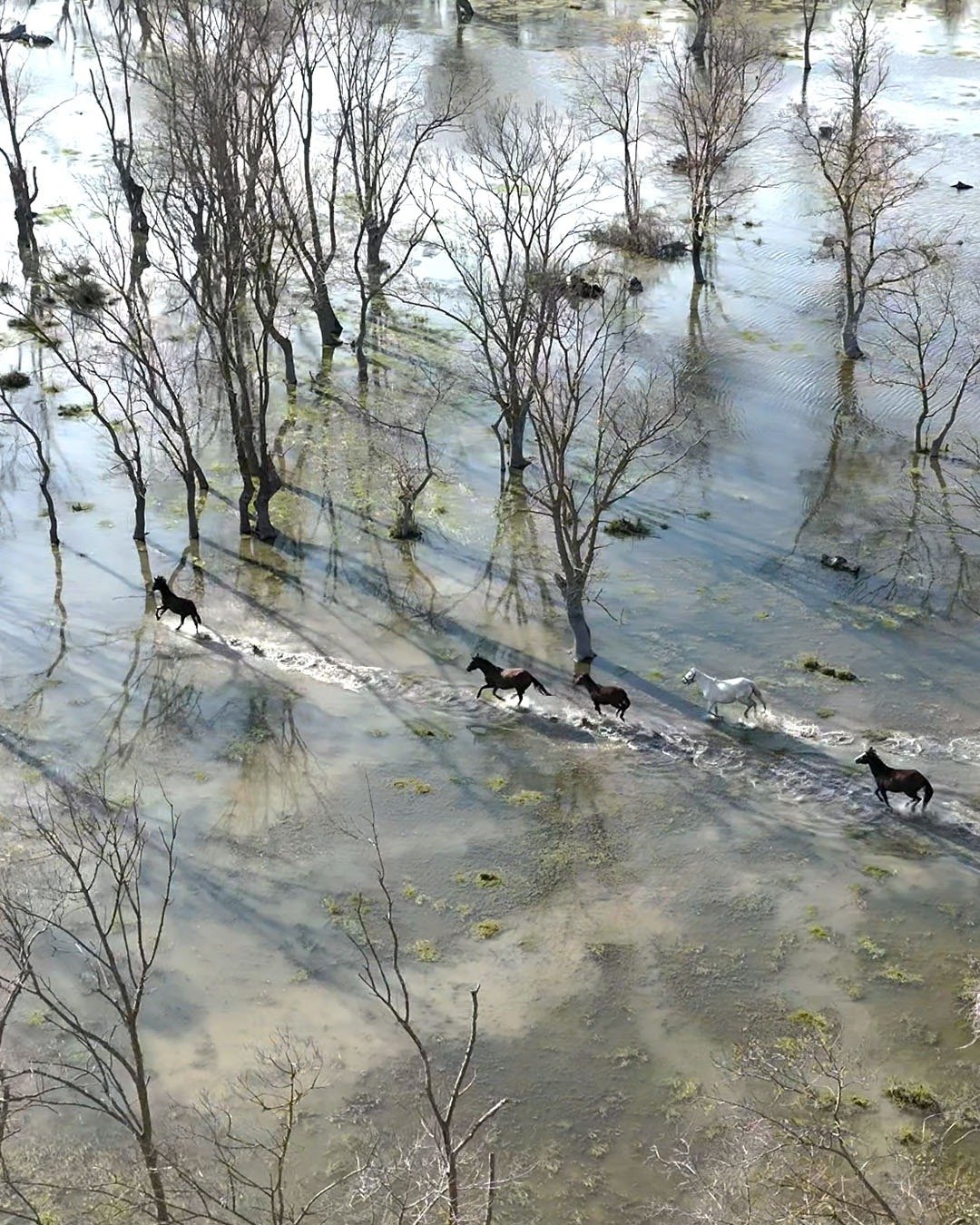 Emre ŞAHİNOL/BAFRA (Samsun), (DHA)- SAMSUN’da Kızılırmak Deltası’nda yılkı atları, dronla görüntülendi.