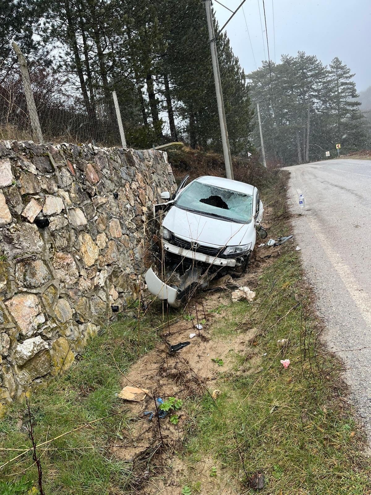 Yavuz YILMAZ/ İNEGÖL(Bursa), (DHA)- BURSA’nın İnegöl ilçesinde kontrolden çıkan otomobilin istinat duvarına çarptığı kazada 1’i çocuk 4 kişi yaralandı.